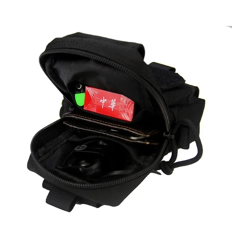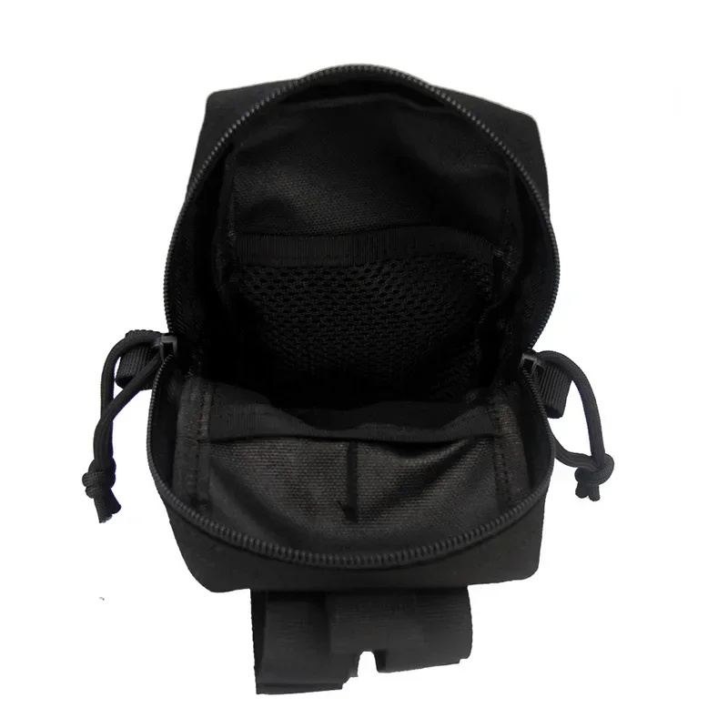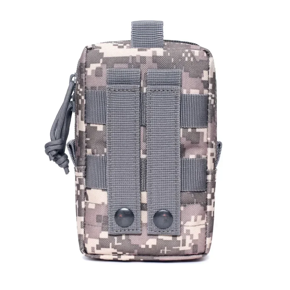 Peso: 125 g Tamaño: 10 cm (largo) x 6 cm (ancho) x 17 cm (alto) Múltiples bolsillos.1 bolsillo frontal,1 compartimentos principales (con una capa de malla, una capa principal y otra pequeña) para dispositivos pequeños. Sistema Molle. La bolsa tiene fuertes presillas para cinturón en la parte trasera, muy resistente y resistente.Las correas con hebilla en la parte posterior se pueden sujetar a una mochila, chaleco, cinturón u otros equipos como una bolsa exterior adicional o llevarla como una bolsa normal para asegurar los equipos esenciales. Multiusos.Un organizador ideal para teléfono celular, bolígrafo, llavero, dispositivo GPS, cámaras digitales, municiones, paracord o cualquier dispositivo necesario que necesite. Bolsa versátil. Diseñado como una bolsa táctica molle, también se puede usar como una pequeña bolsa EDC, una bolsa para dispositivos o una bolsa para cinturón. Adecuado para acampar, hacer caminatas, vivir al aire libre, hacer trekking, pescar, etc.