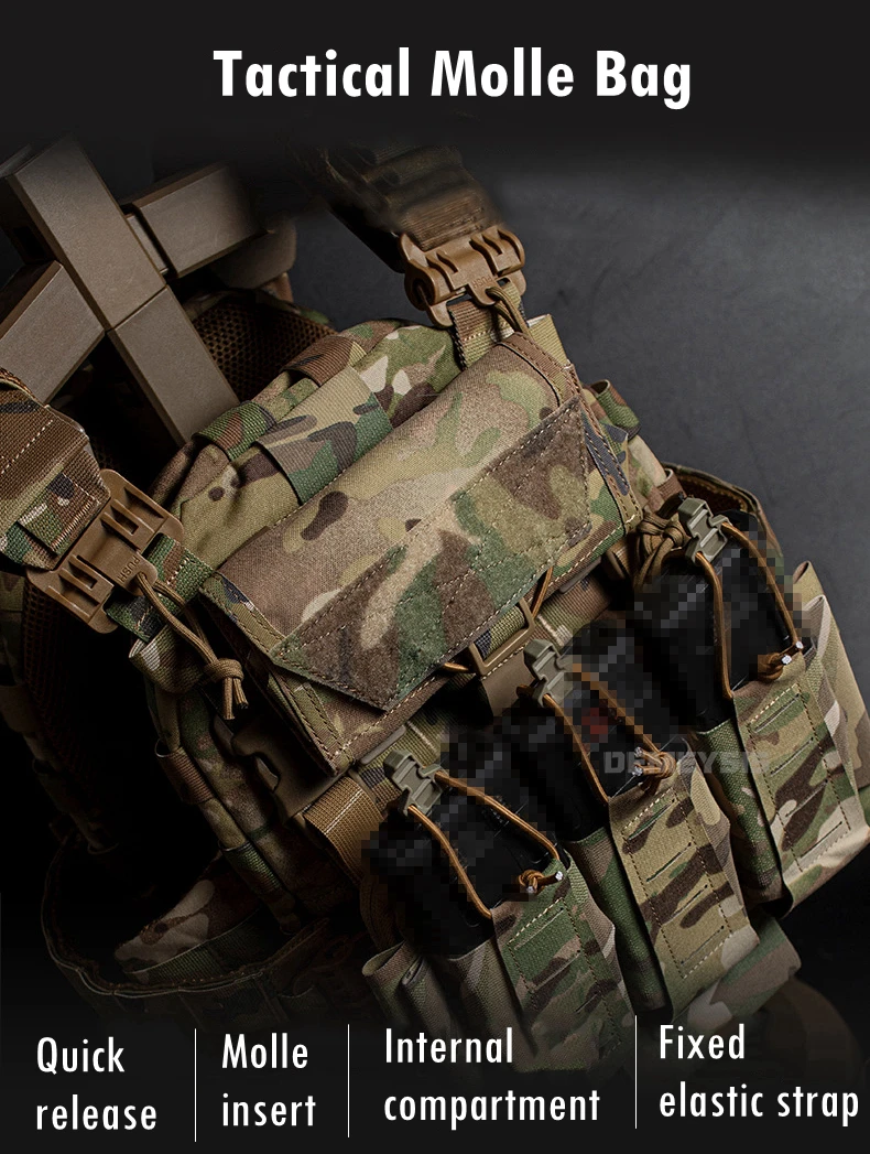 ● Diseño con inserto Molle. Se puede conectar al cinturón, mochila, chaleco, etc.
