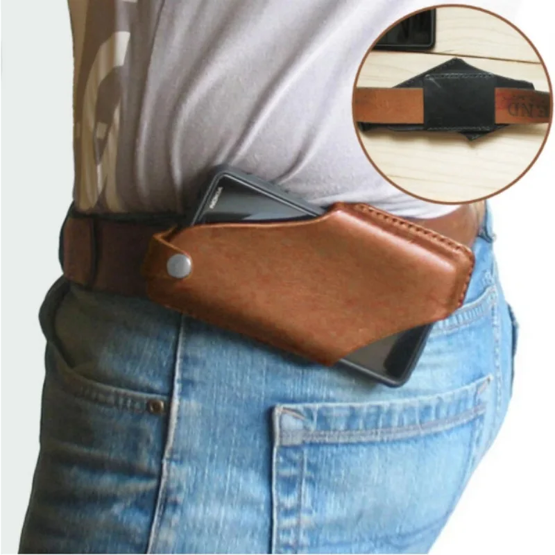 Bolsa de teléfono móvil colgante de cintura para deportes al aire libre, bolsa multifuncional anticaída, cuero de vaca Pu