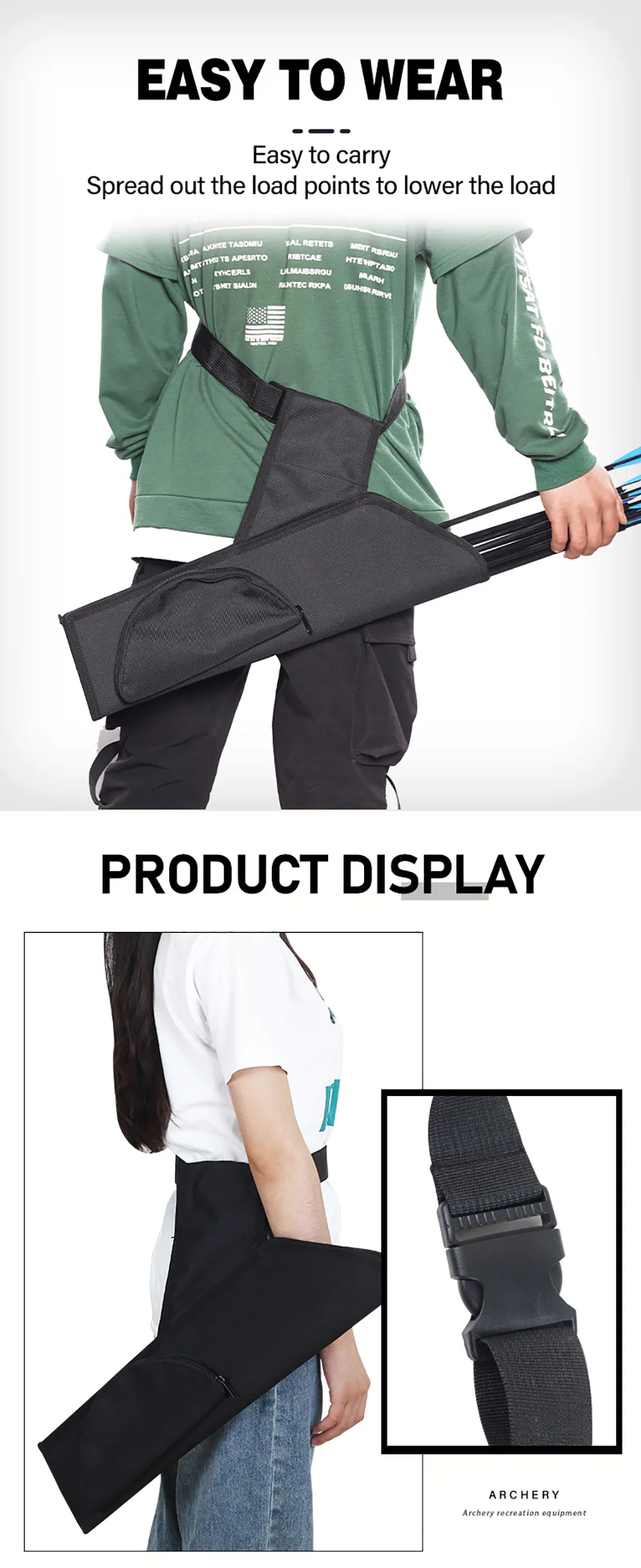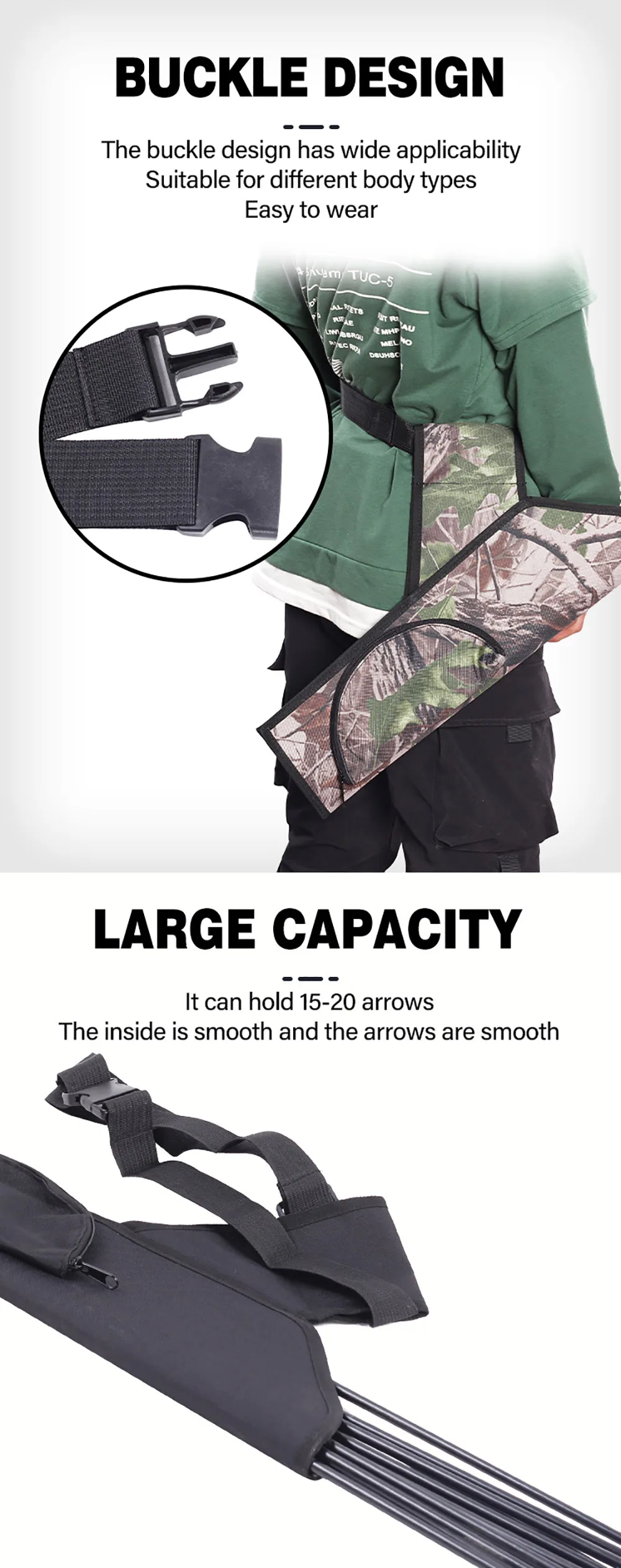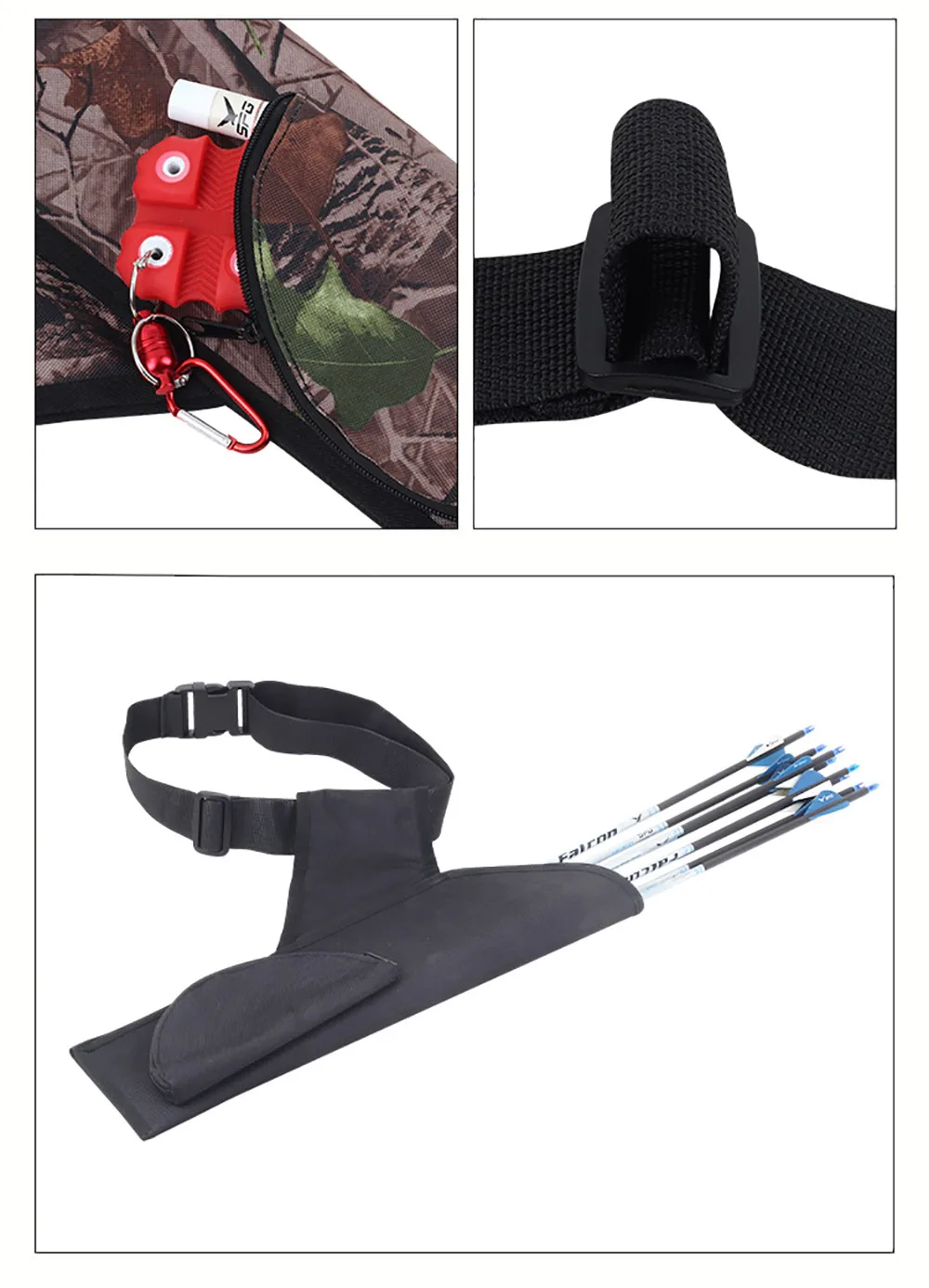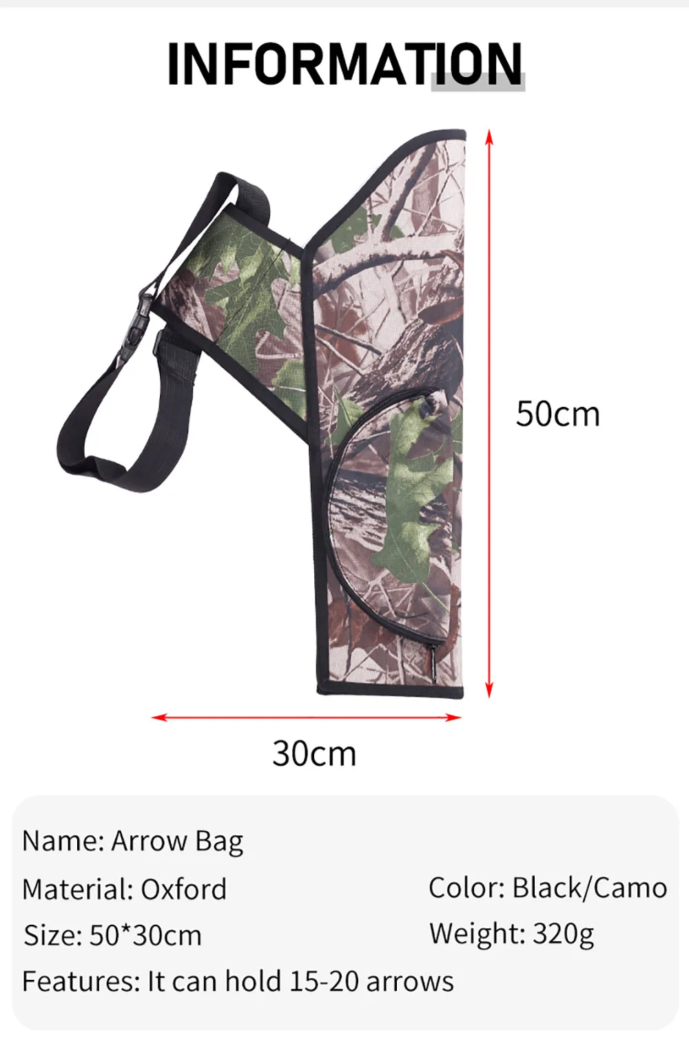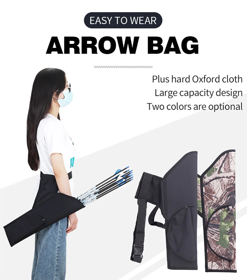 Carcaj de flecha de caza al aire libre de 50Cm, 15 a 20 flechas, bolsa de tiro con arco de cintura cruzada de tela Oxford ajustable, bolsa de almacenamiento exterior para caza al aire libre, carcaj de flecha