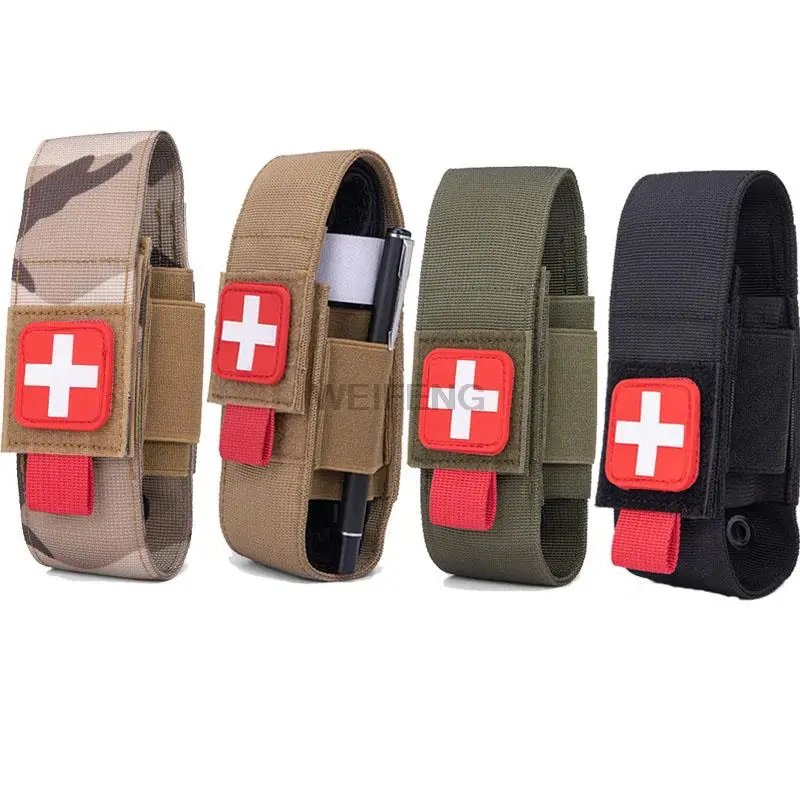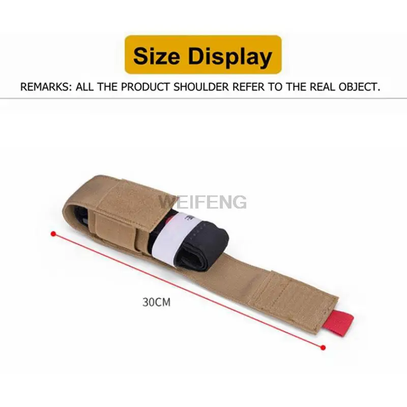 Nombre: Bolsa táctica para torniquete molle Color: negro, verde, marrón, CP Tamaño: 30cm de largo (abierto) Peso: 70g Material:nylon + tela elástica Material de nylon de alta calidad, duradero y usable, largo tiempo de uso; sistema Molle, para la mayoría de los modelos de chaleco, cinturón, mochila o bolsa; tela elástica, para la mayoría de los accesorios, como bolígrafos, linternas, tijeras, Bolígrafos; diseño de gancho y lazo frontal, para parche o logotipo de bricolaje; Perfecto para deportes al aire libre, caza, actividades CS;