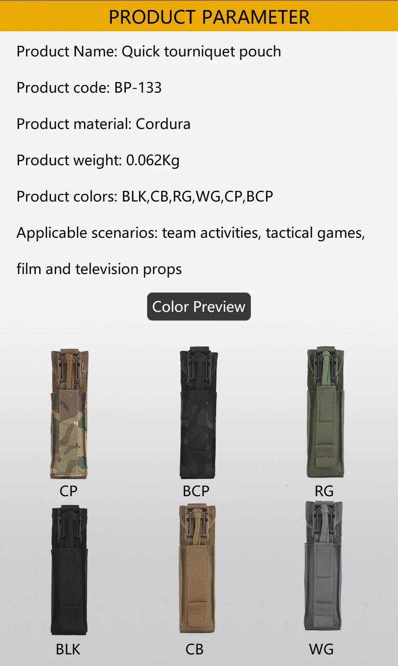Bolsa de torniquete rápido, fácil instalación, fija con pegatina mágica, diseño de desmontaje rápido