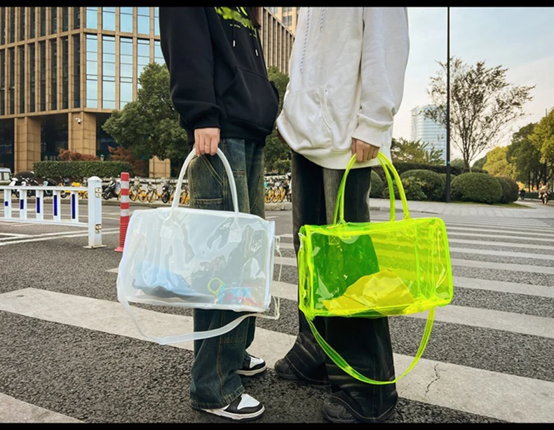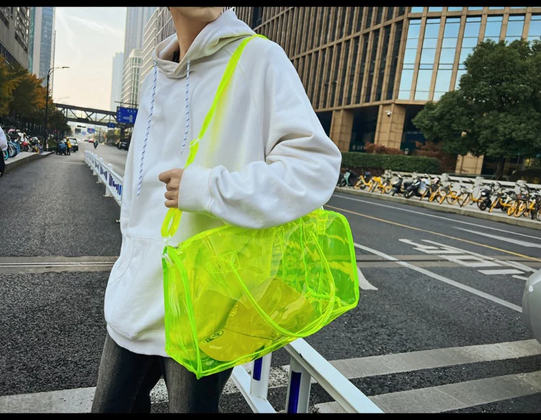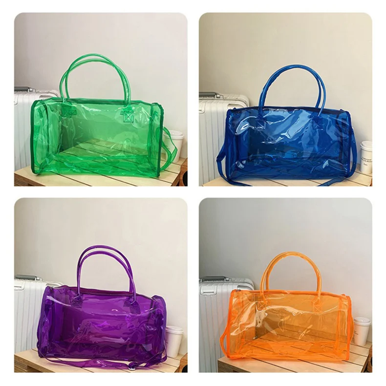 Bolso transparente de PVC de Color caramelo, bolso de Fitness de gran capacidad, bolso cruzado portátil de almacenamiento de moda para natación, impermeable