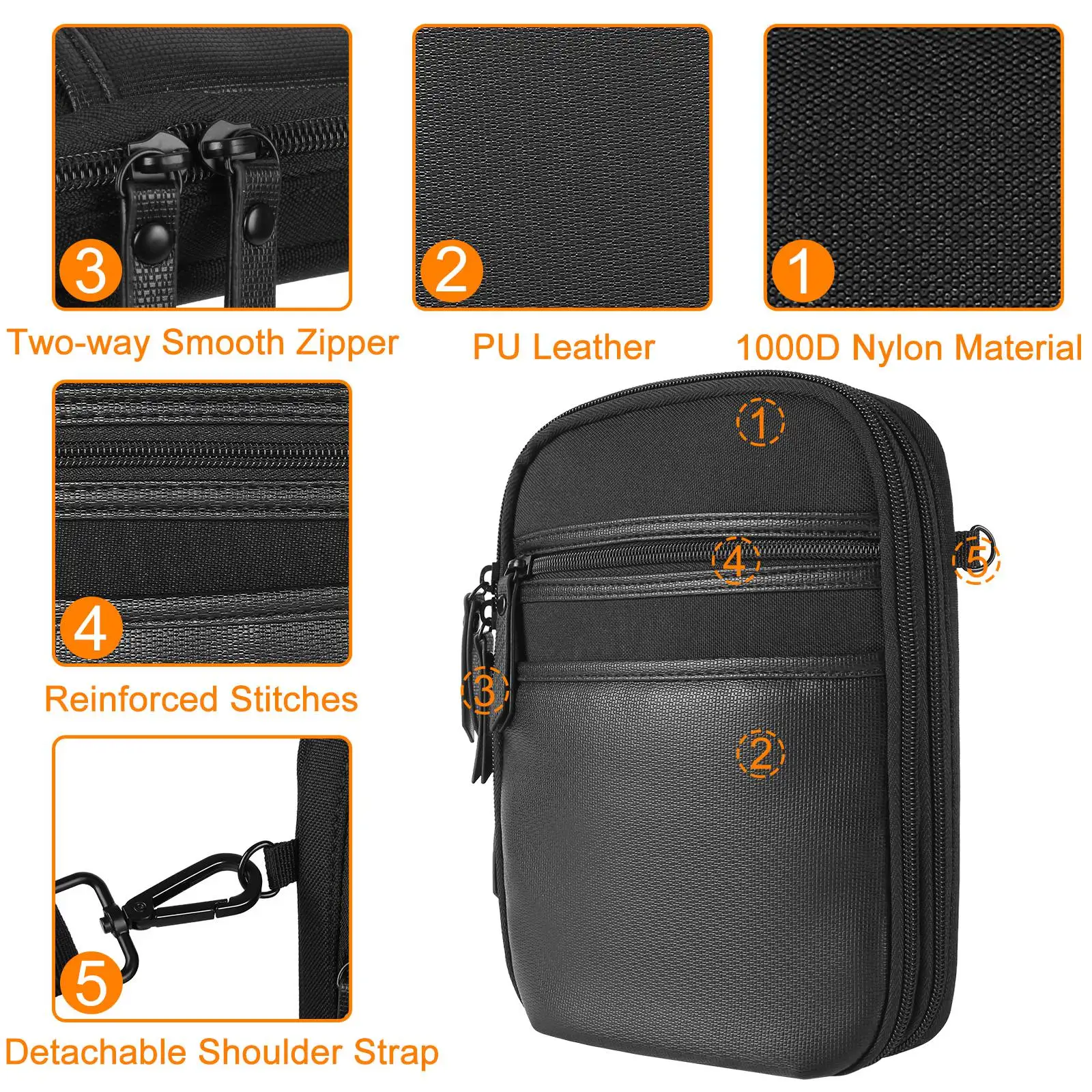 1. 【Material】Hecho de nailon resistente al agua 1000D y cuero PU, duradero y ligero. Ofrece una gran protección para su pistola, revista, teléfono inteligente y otros accesorios pequeños.