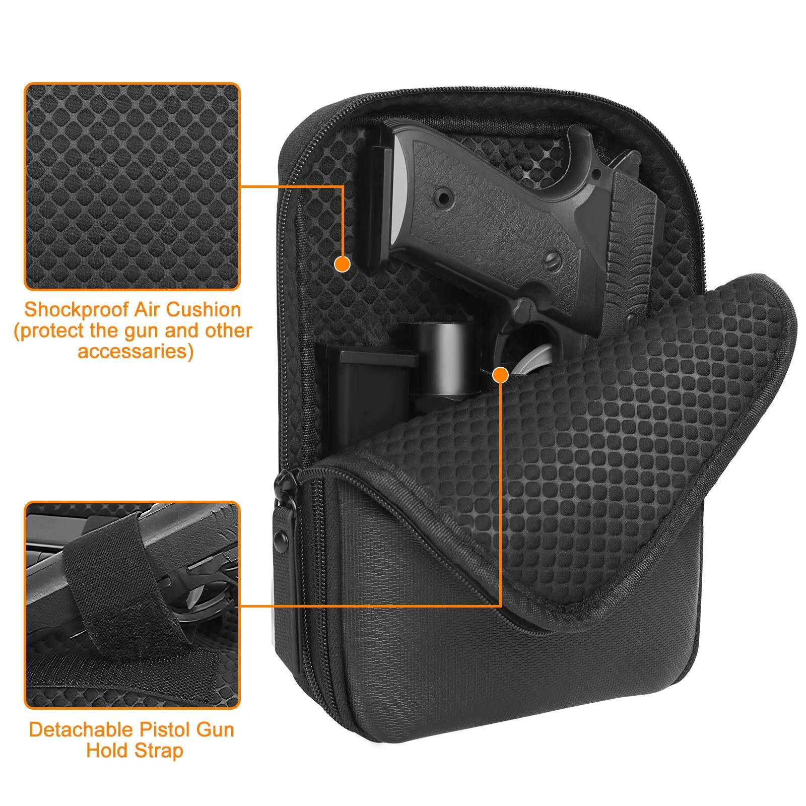5. 【Compatibilidad】Tamaño de la bolsa de pistola:23*18*4,5 cm/9,05 "x 7,08" x 1,77"El tamaño práctico se adapta a la mayoría de los tipos de pistolas.