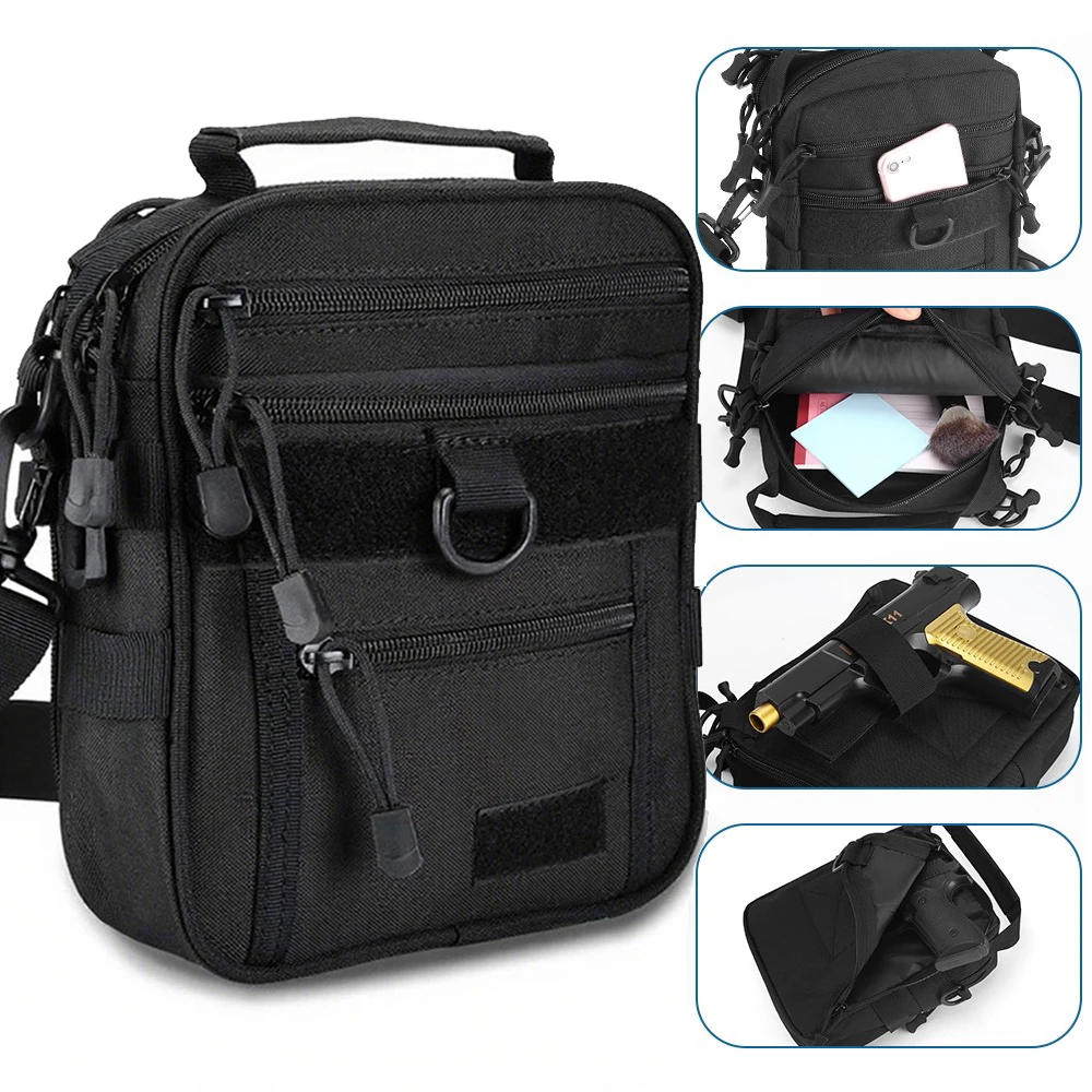 Bolsa de transporte oculta para pistola, bolso táctico de hombro para pistola, funda para pistola de acceso rápido, bolsa EDC para caza al aire libre, organizador Molle