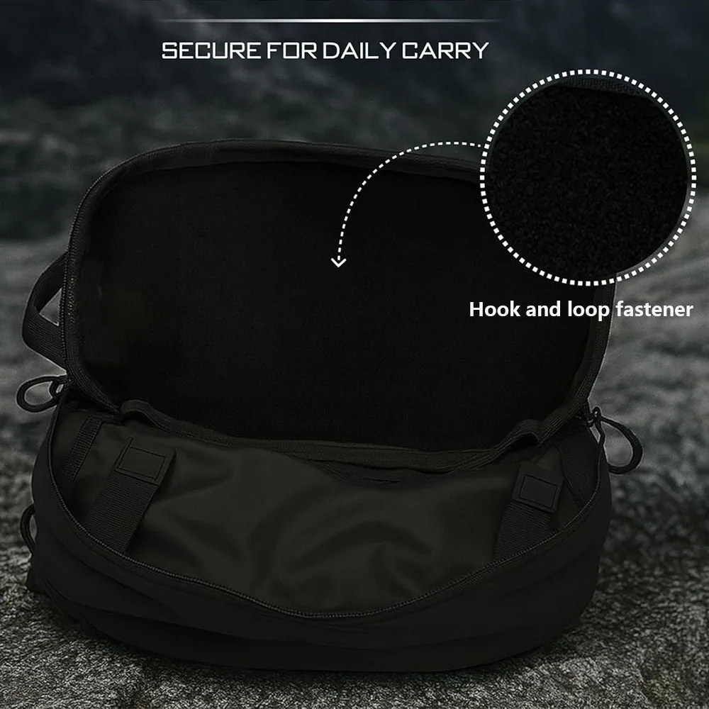 1. 【ALMACENAMIENTO SEGURO CON SUBCOMPACTO】 Con un bolsillo trasero con cremallera completa de tamaño generoso que mide 5,5” de alto, 9,5” de ancho y 1” de profundidad, la bolsa establece el estándar para un almacenamiento seguro.Diseñado específicamente para acomodar brazos laterales subcompactos y compactos como el Glock-19 y otros de dimensiones similares, este bolsillo garantiza que su valioso equipo permanezca seguro y de fácil acceso.