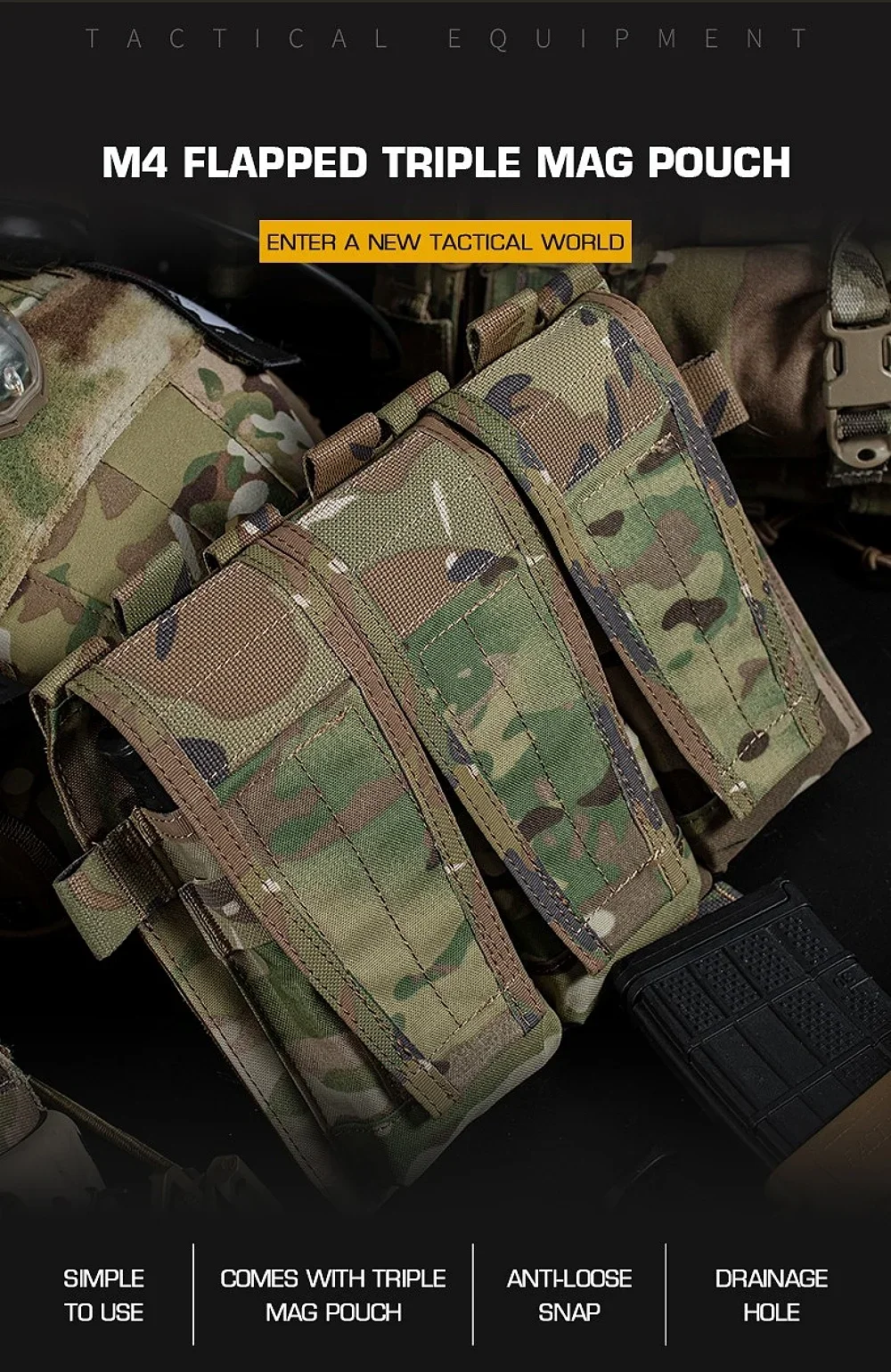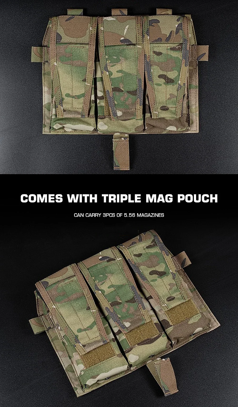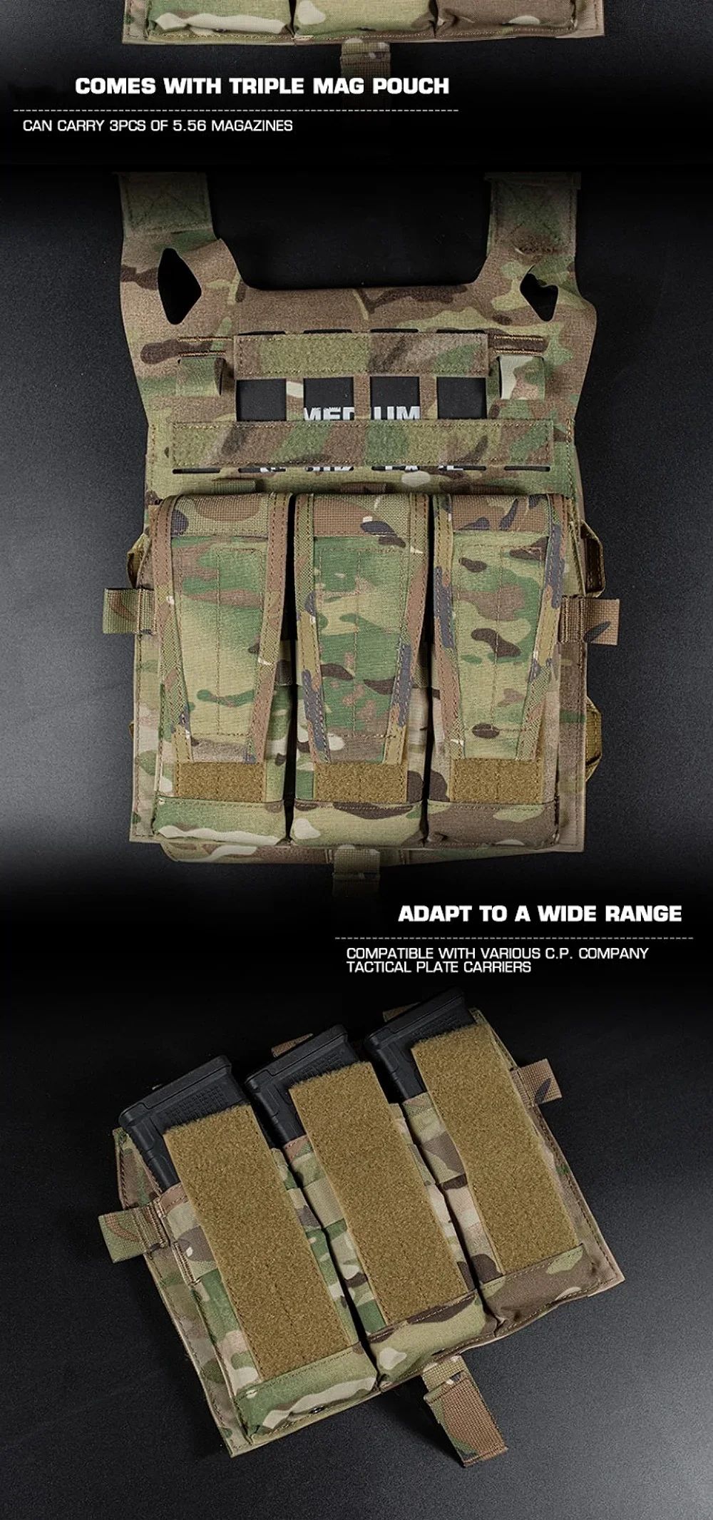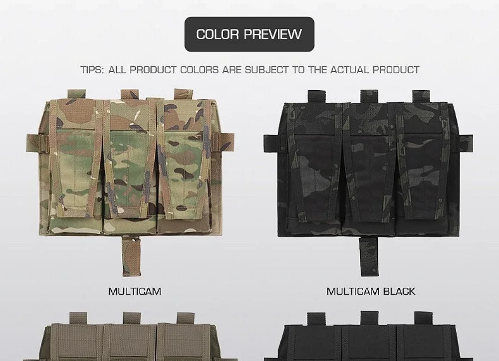 Puede contener tres cargadores de 5,56.※ El interior de la solapa está hecho de material duro, que es fácil de operar cuando se usan guantes.※ Hay orificios de drenaje en la parte inferior para un drenaje rápido.※ La parte inferior está equipada con broches para combinar el chaleco con más firmeza y evitar que se afloje.※ Compatible con varios chalecos tácticos de la empresa CP.