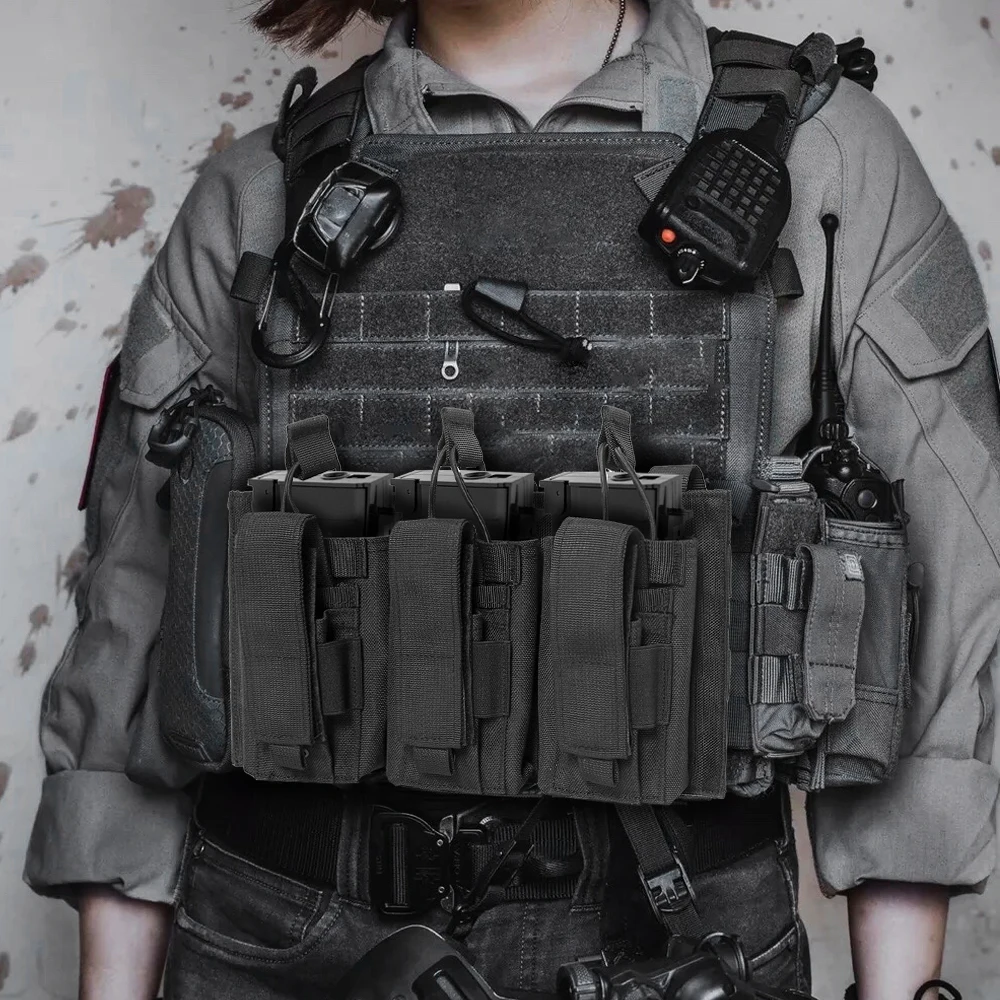 1.El diseño de triple bolsillo permite transportar simultáneamente múltiples cargadores, satisfaciendo diversas necesidades operativas, especialmente para misiones tácticas o actividades al aire libre que requieren cambios rápidos de cargadores.