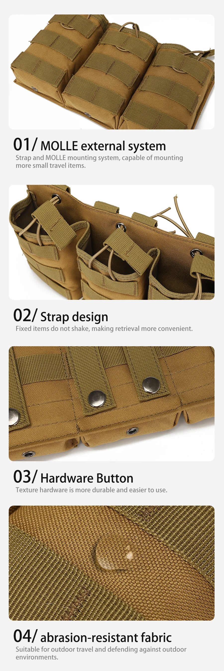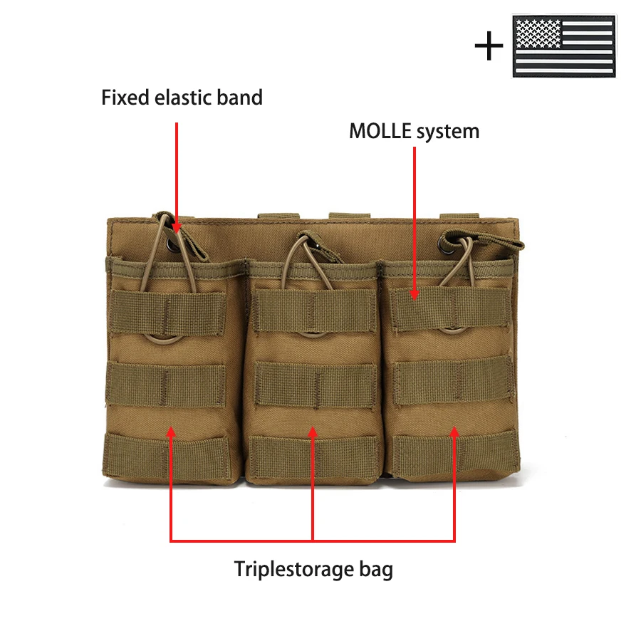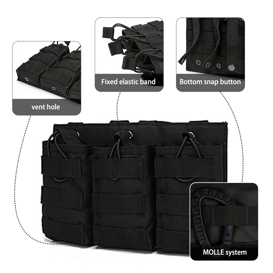 Bolsa triple Molle hecha de material de tela Oxford, duradera y adecuada para montaje al aire libre y de chaleco