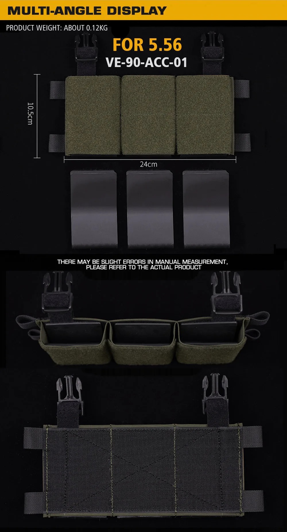 Bolsa Triple para revistas 5,56/7,62 para chaleco táctico LV119/HSP/Scarab con hebilla de tamaño 2,5 CM bolsas Airsoft Mag