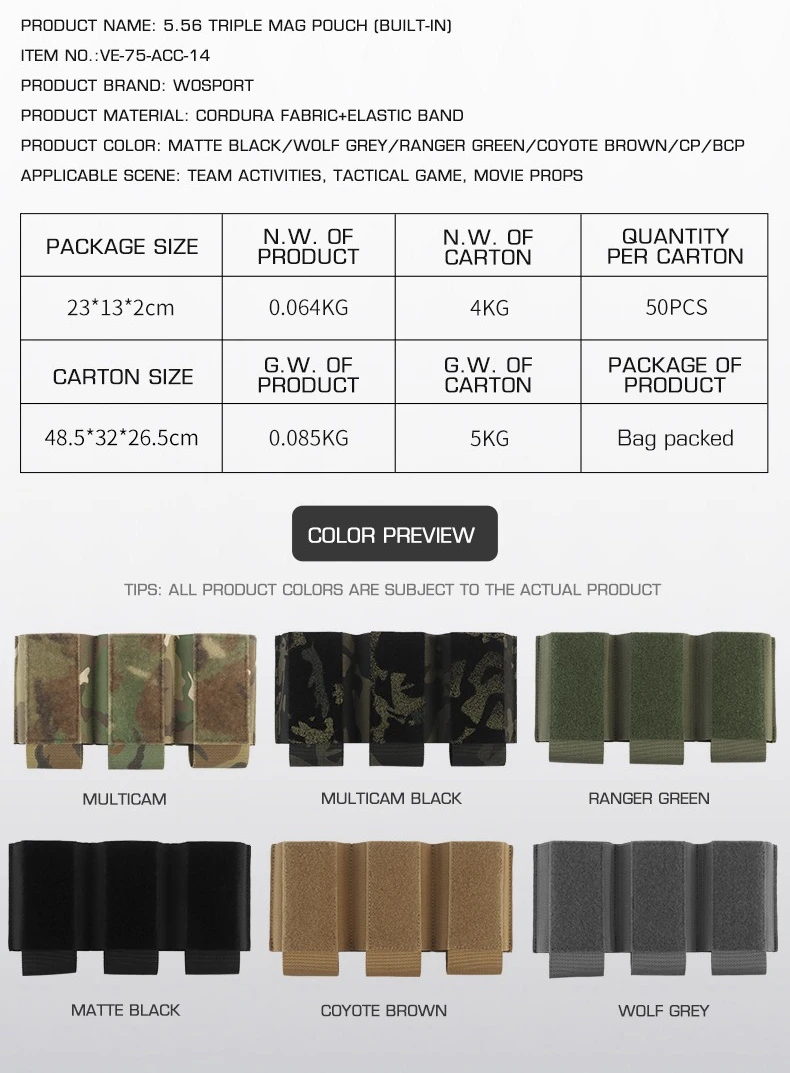 Nombre del producto: Bolsa táctica Triple para revistas para 5,56 o 7,62