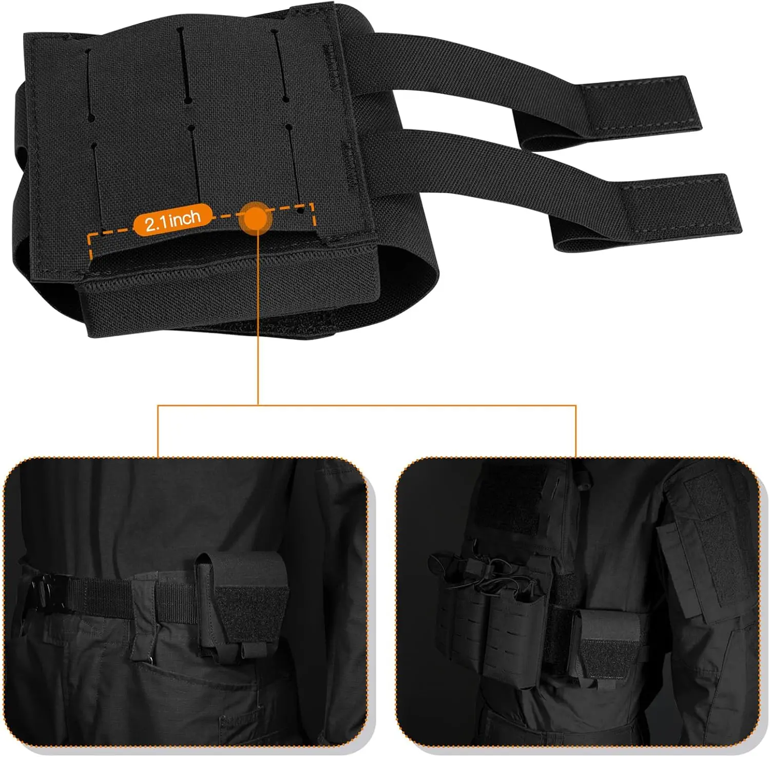 4. 【Múltiples opciones de transporte】 Funda para esposas con 2 clips Molle, compatible con el sistema Molle (se adapta a un cinturón de servicio de hasta 2,8"/7 cm).La funda para esposas se fija fácilmente a cinturones de servicio, chalecos molle, mochilas tácticas o equipos de protección de seguridad.