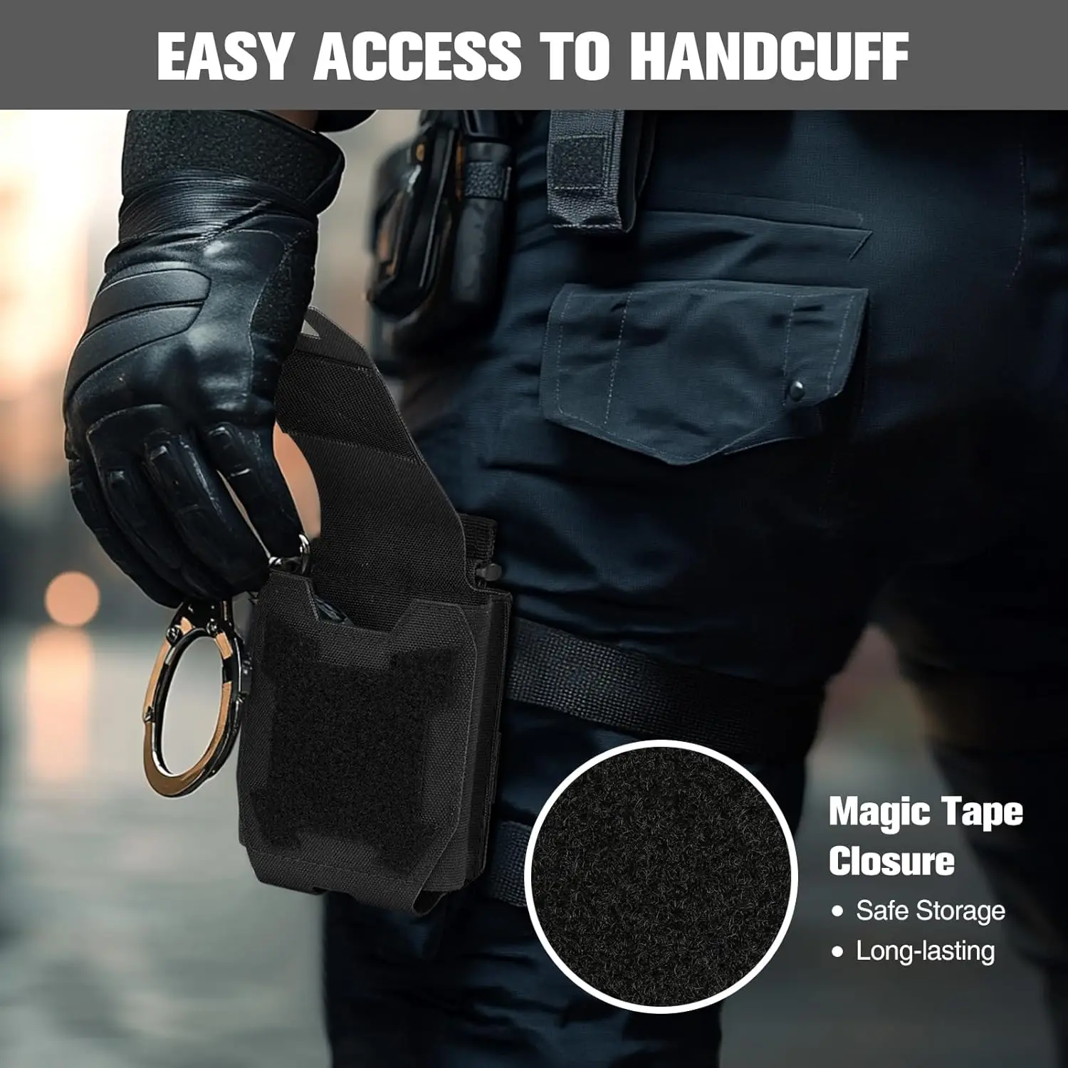 2. 【Se adapta a la mayoría de tamaños de esposas】 Adecuado para transportar la mayoría de las esposas, incluidas esposas con bisagras, esposas rígidas plegables, esposas de cadena, con lado elástico para una mejor retención de las esposas.La bolsa para esposas puede organizar artículos pequeños como herramientas EDC o cuadernos de tamaño similar.