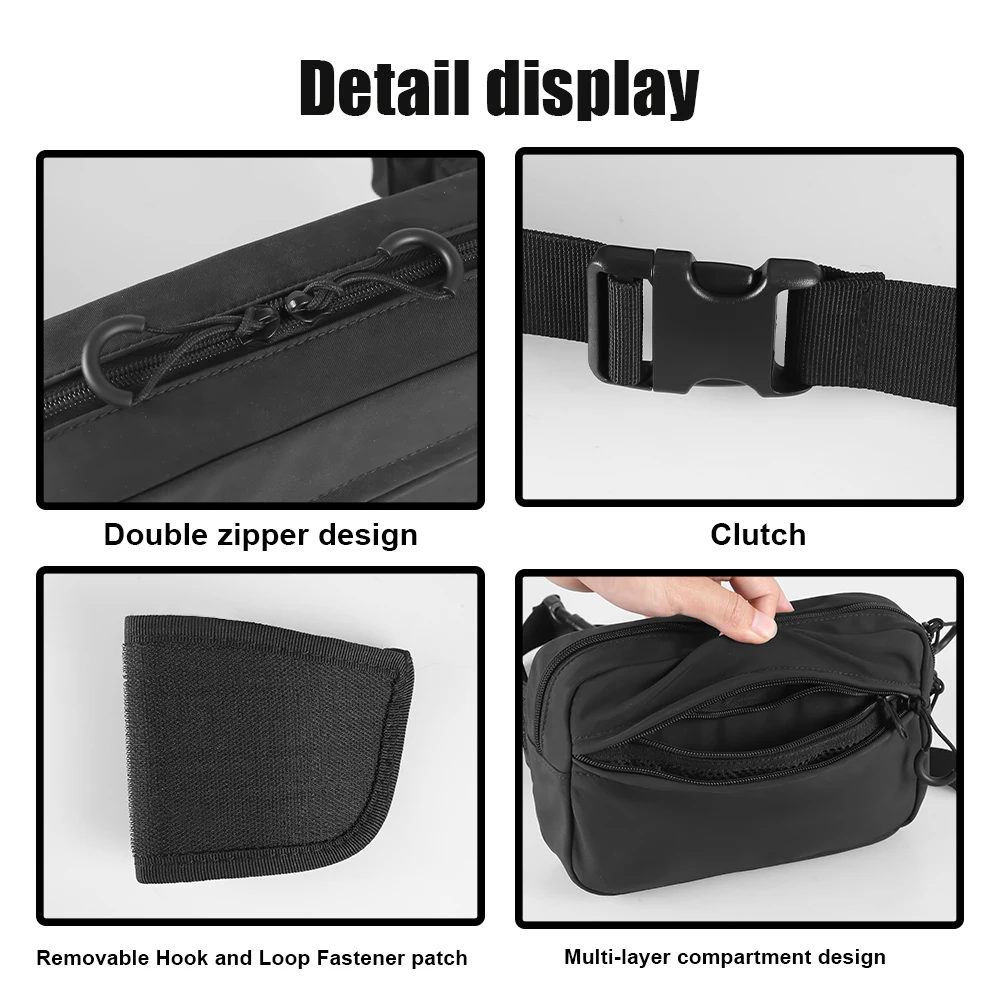 3. 【Almacenamiento compacto y flexible】 La riñonera táctica cuenta con múltiples compartimentos, lo que ofrece almacenamiento dividido para diferentes artículos.Guarde elementos esenciales de acceso rápido como teléfono, dinero en efectivo o auriculares en el bolsillo frontal, asegure los objetos de valor (pasaporte/tarjeta) en el bolsillo de malla oculto. Este diseño garantiza una organización ordenada con un acceso rápido, lo que hace que el transporte diario sea fácil y confiable.