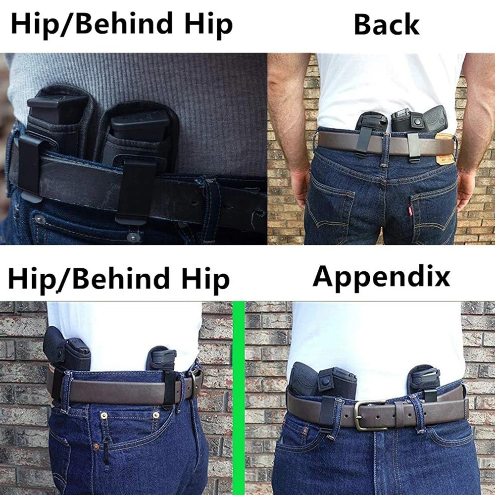 2.Diseño ambidiestro: nuestro resistente clip de metal mantiene su pistola/pistola segura contra su cuerpo.Funciona muy bien con subcompacto a pistolas de tamaño completo.Se puede llevar de diversas maneras, incluidos apéndice, cadera y espalda.