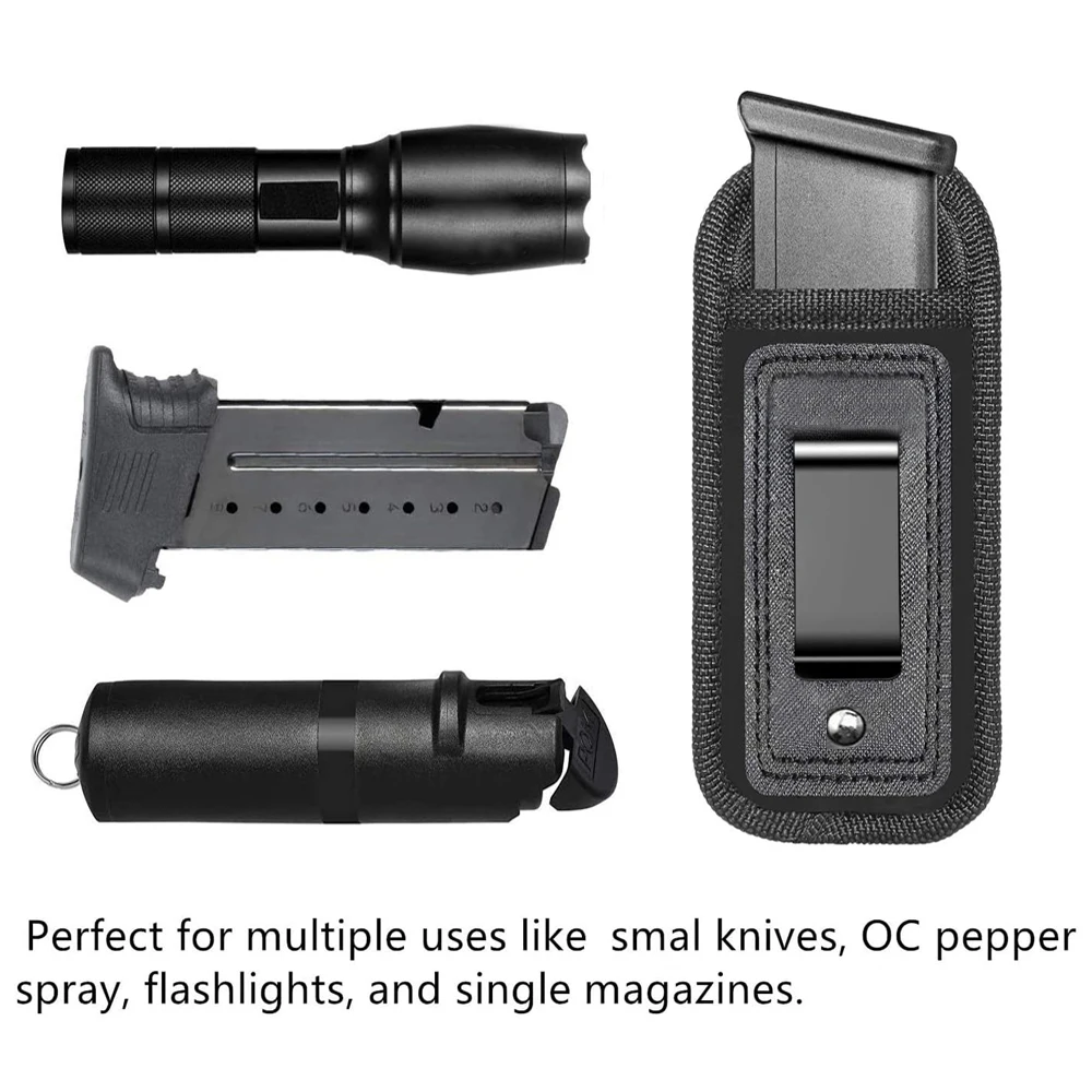4.Revista adicional, funda para cuchillo: esta funda de neopreno con clip para cinturón se puede usar para su revista adicional, un cuchillo plegable o incluso algún otro equipo como spray de pimienta o un aficionado.