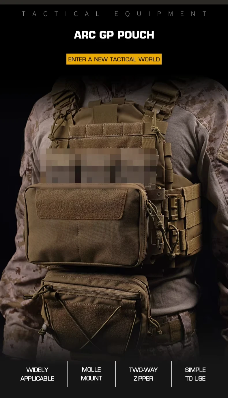 Bolsa de utilidad táctica MOLLE, bolsa frontal MOLLE ARC GP, cierre de cremallera, retenedor elástico interno, accesorios para chaleco de arco de caza