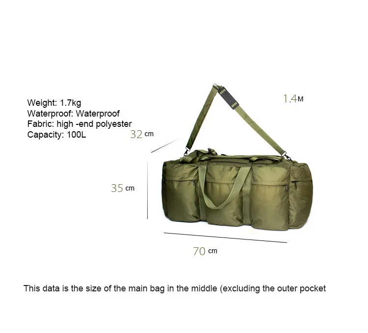 Bolsa de viaje al aire libre, bolsa de almacenamiento de gran capacidad de 100l, mochila de camuflaje militar para hombre, bolso táctico impermeable del ejército
