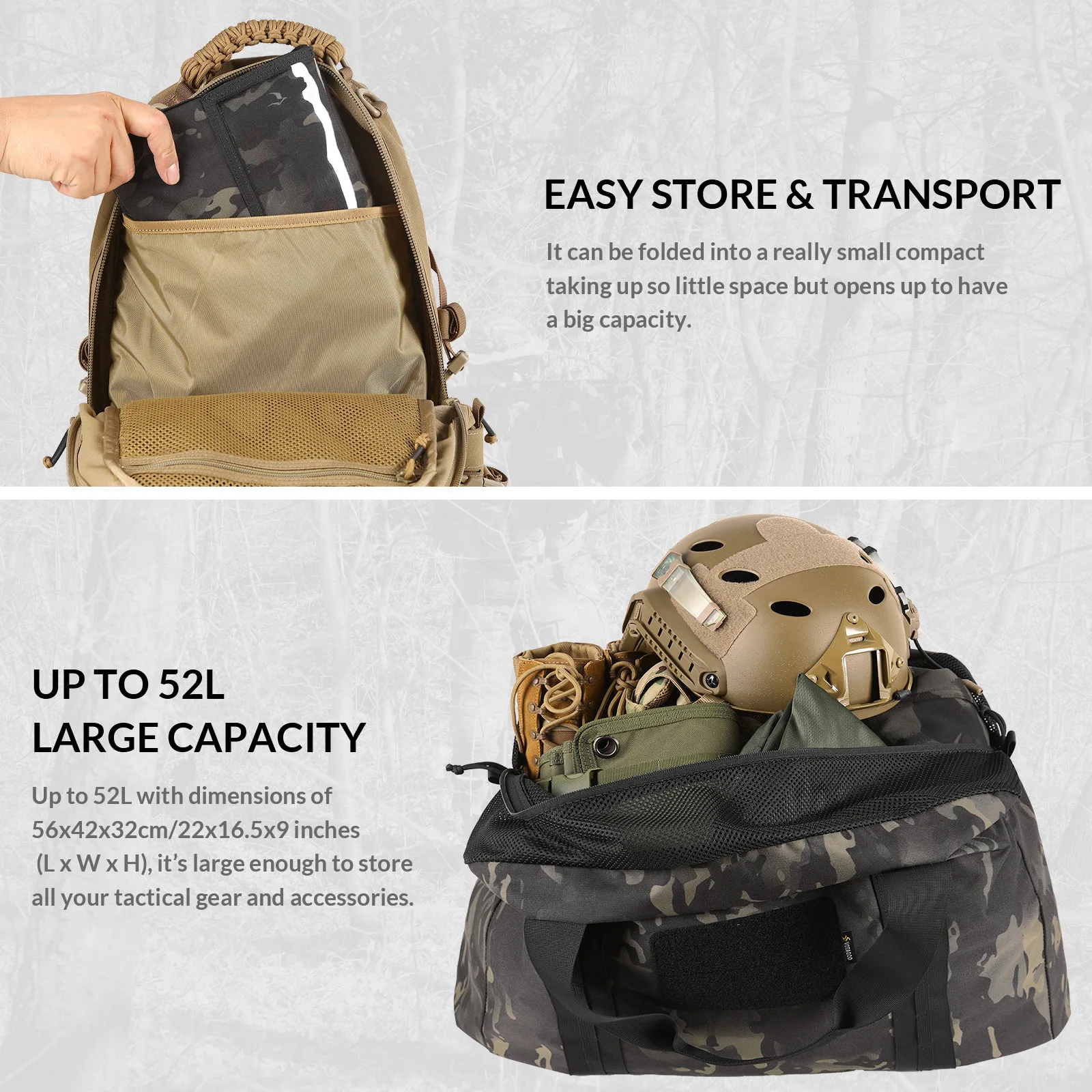 Bolsa de viaje de almacenamiento de equipaje táctico multifuncional para chaleco táctico y casco 500D, bolso de acampada deportivo de gran capacidad de 36-55L