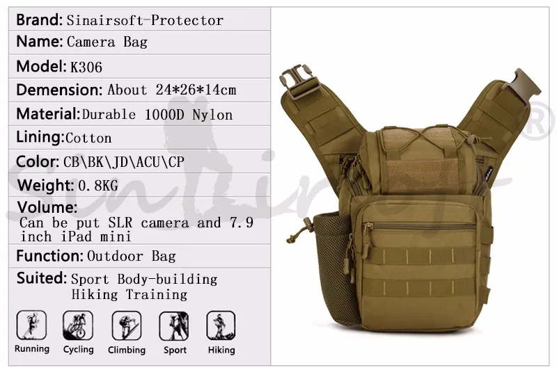 Bolsa de viaje profesional para deportes, mochila de un solo hombro, de nailon, táctica, para caza, al aire libre