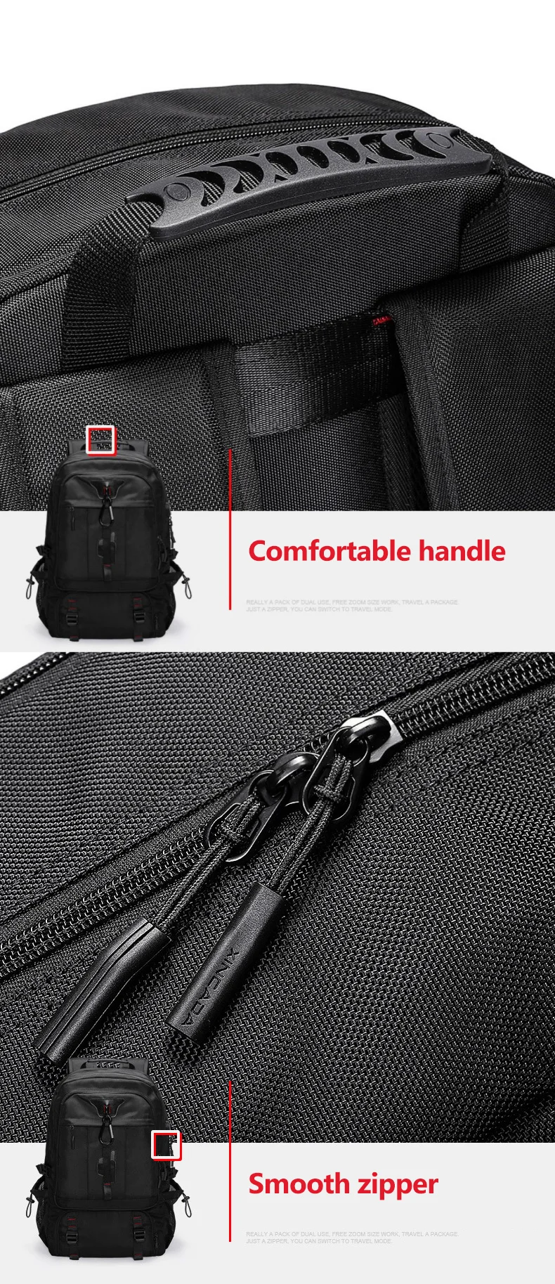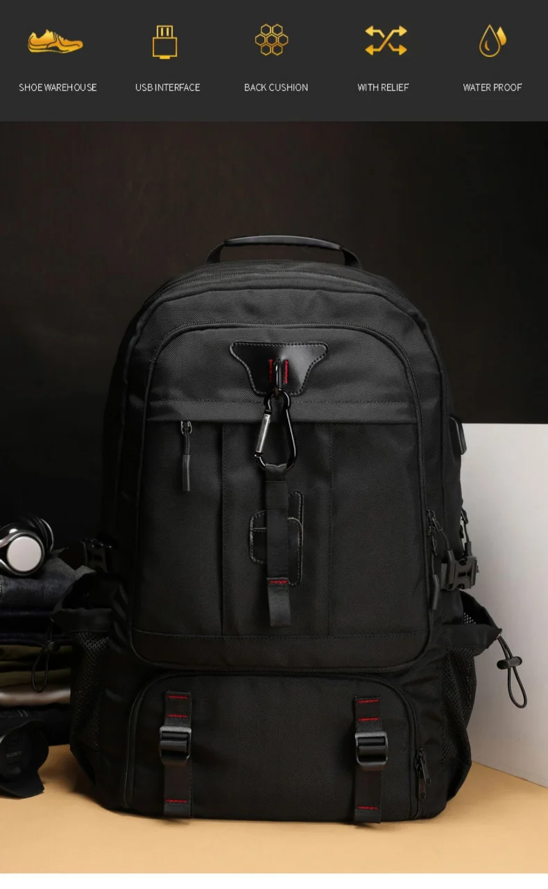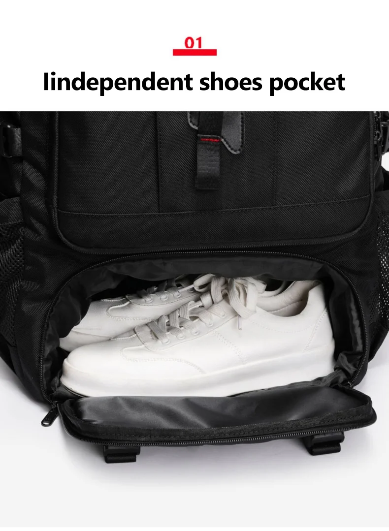 Características: 1. La capacidad es extensible. Y con bolsillo independiente para zapatos