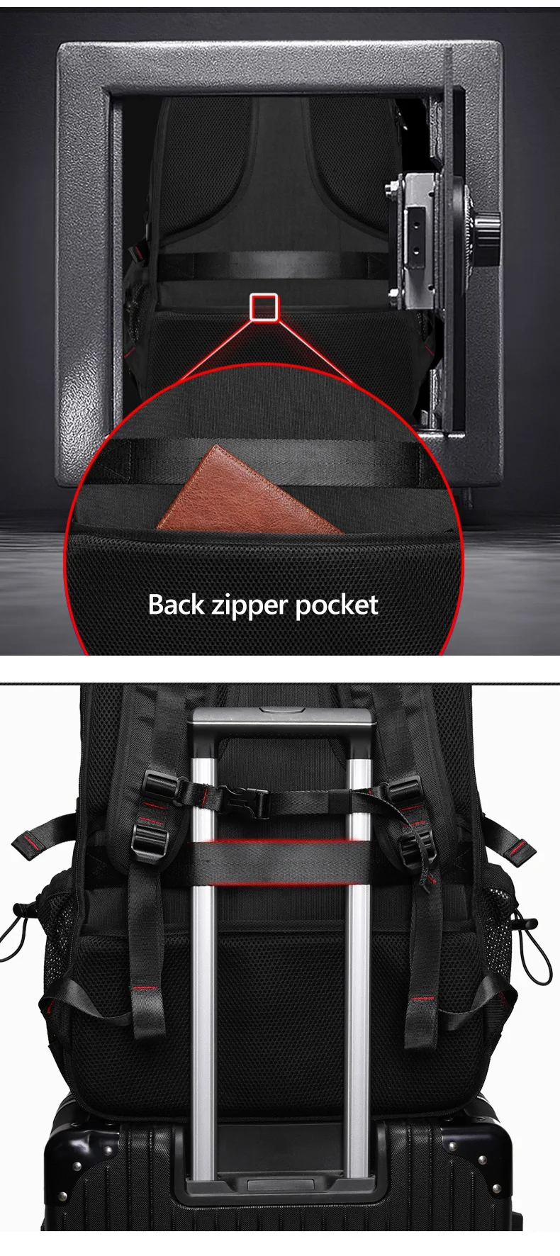 4. Diseño de bolsillo con cremallera trasera antirrobo
