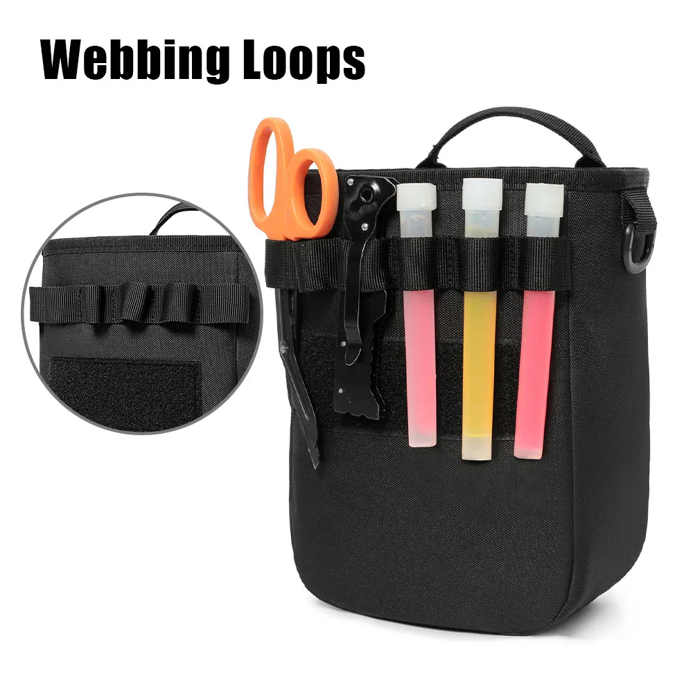 Equipado con múltiples bucles de engranajes en el exterior para colgar herramientas y artículos pequeños, manteniendo sus elementos esenciales organizados y al alcance.