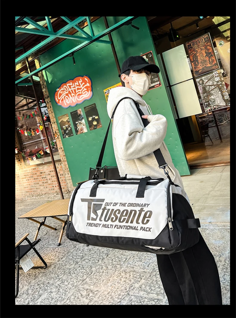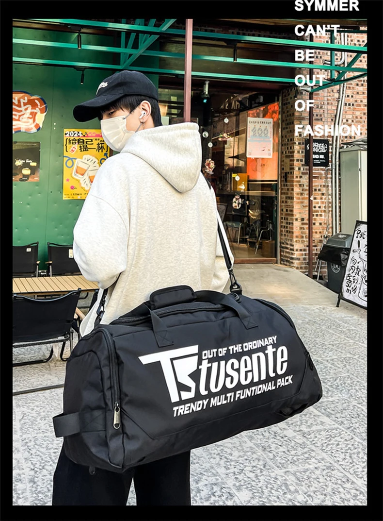 Bolsa de viaje de gran capacidad, bolsa de equipaje de almacenamiento de corta distancia para mujer, bolsa de gimnasio de mano deportiva con separación húmeda y seca