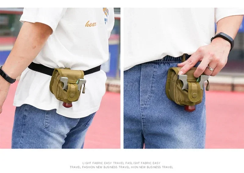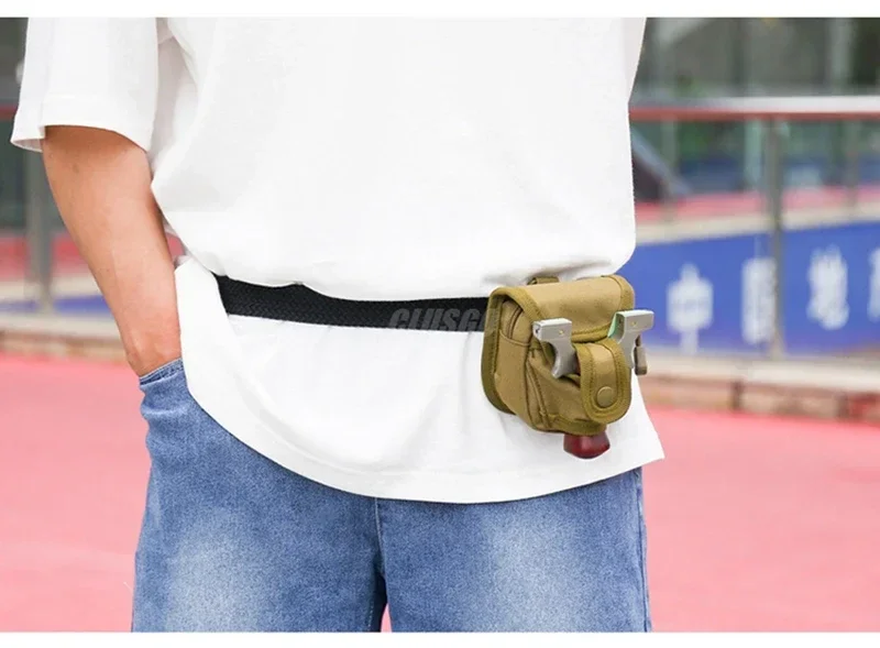 - La hebilla de cincha está diseñada con una hebilla de cincha en la parte posterior de la bolsa, que se puede llevar en el cinturón de cuero.