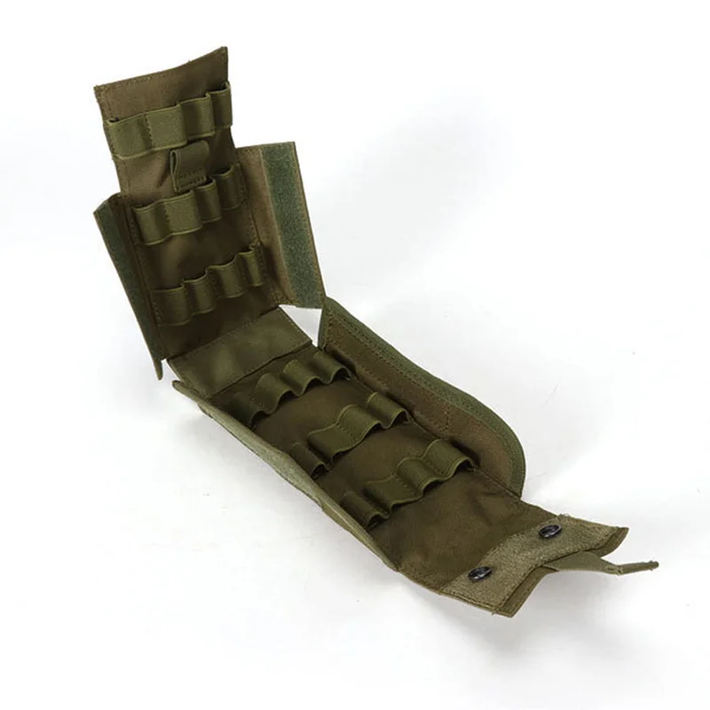 La bolsa de recarga del escopeta tiene capacidad para hasta 25 proyectiles de escopeta.La bolsa tiene un bonito diseño delgado y alto que la convierte en un ajuste perfecto para una funda para escopeta o engranajes acoplables molle.La bolsa se abre y cierra fácilmente con botones asistidos por gancho y bucle o se abre completamente para facilitar la carga/descarga.
