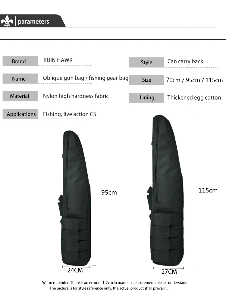 -Puede poner rifle con el visor en esta bolsa para armas.