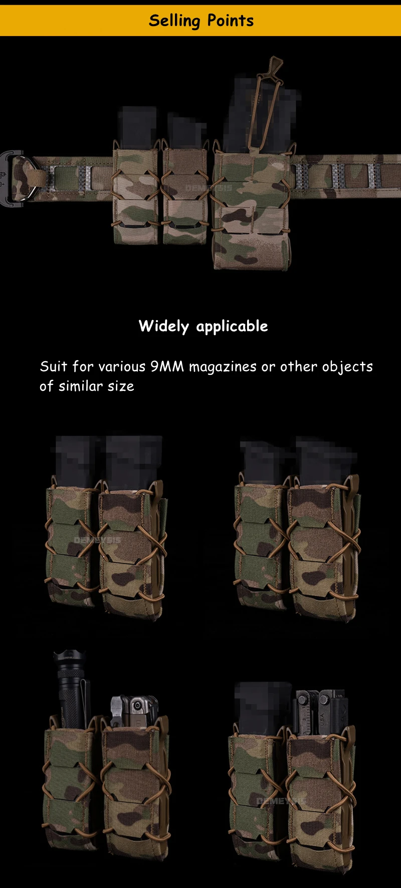 ✔ Capacidad de doble cara– Capacidad para dos revistas de 9 mm (9,8 × 10 × 2,3 cm)