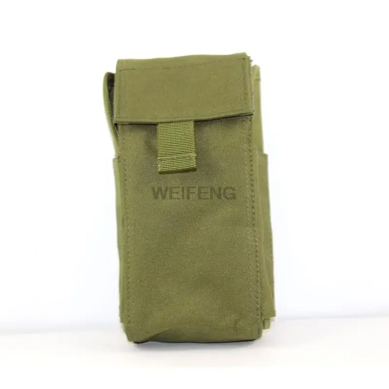 The pouch opens up and closes easily with hook & loop assisted buttons or opens up wide completely for easy loading/unloading.