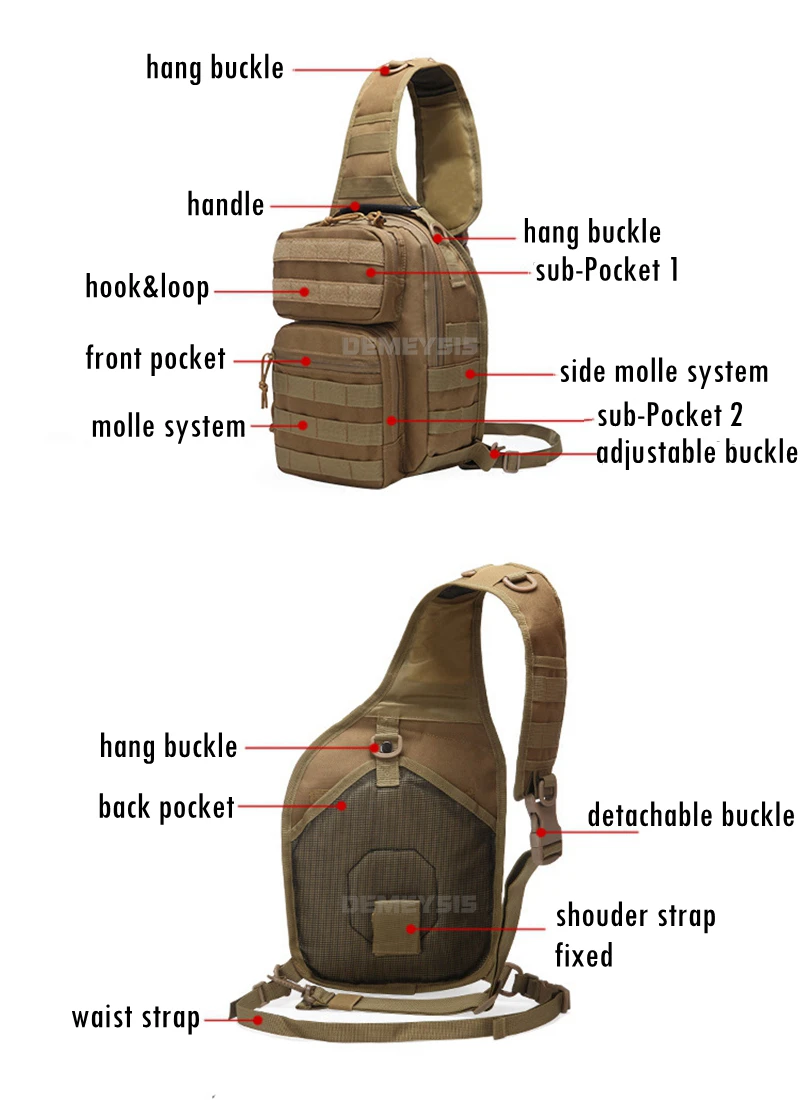 ●Mochila táctica como riñonera o bolsa EDC, está hecha de Oxford 900D duradero. Duradero y resistente al agua.