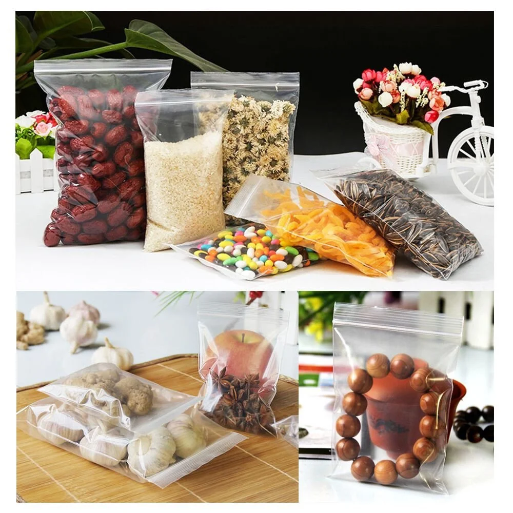 Bolsas de plástico transparente con cierre hermético, bolsas de polietileno resellables, almacenamiento de alimentos frescos, paquete resellable de varios tamaños, 5-12 cables, 100 unids/lote por paquete