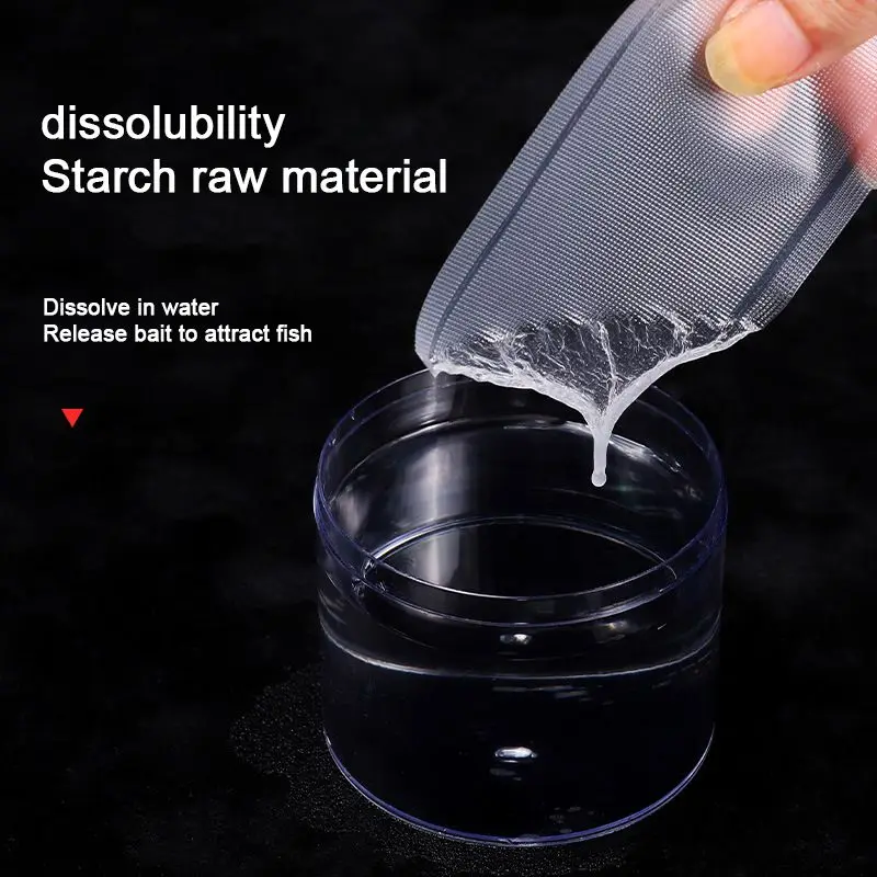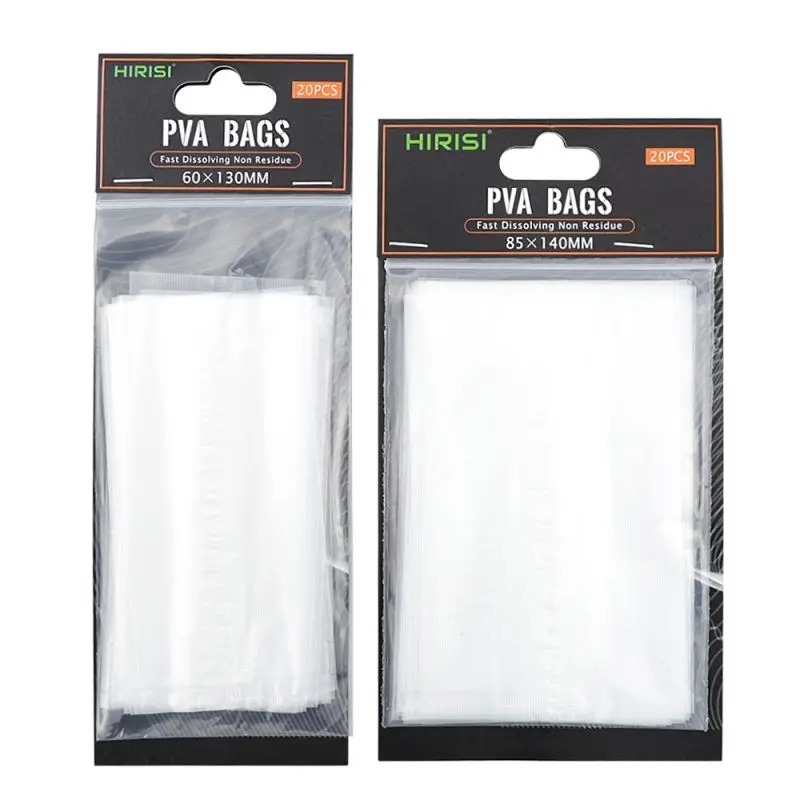 1: La bolsa de PVA es completamente soluble en agua fría, incluso en agua puede disolverse en poco tiempo. Por lo tanto, es lo mejor para la pesca de carpa durante toda la temporada.