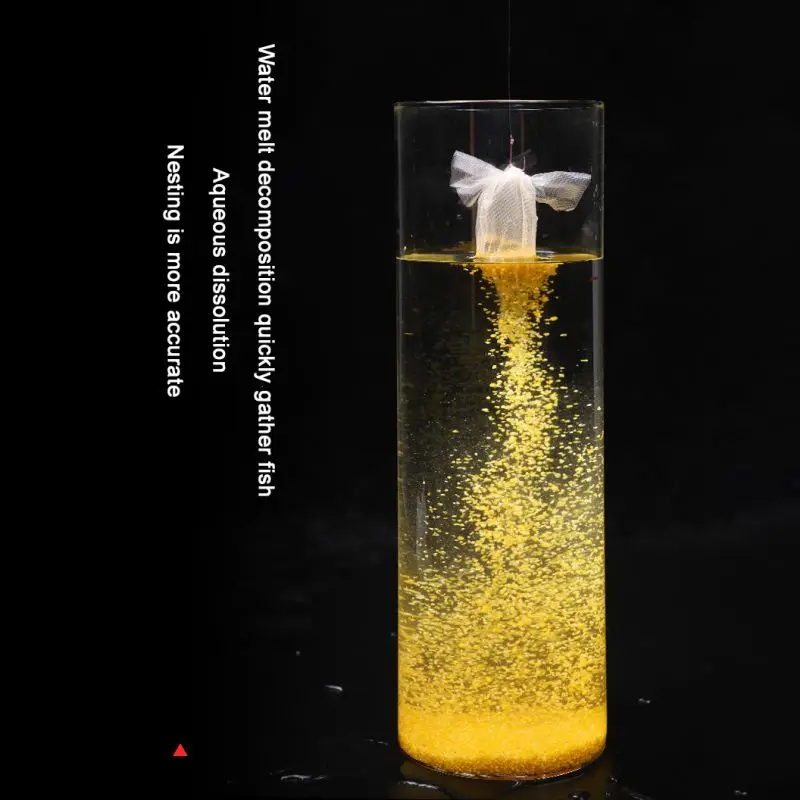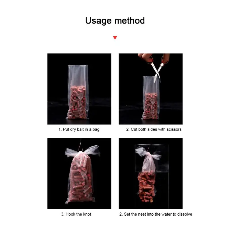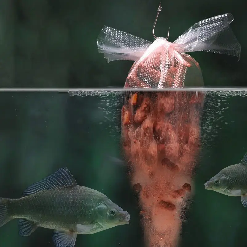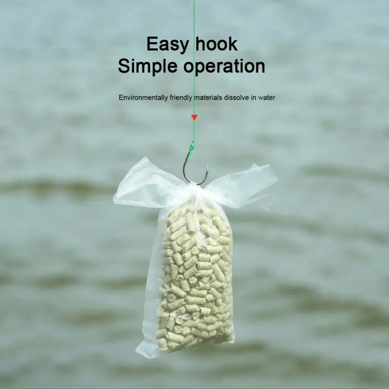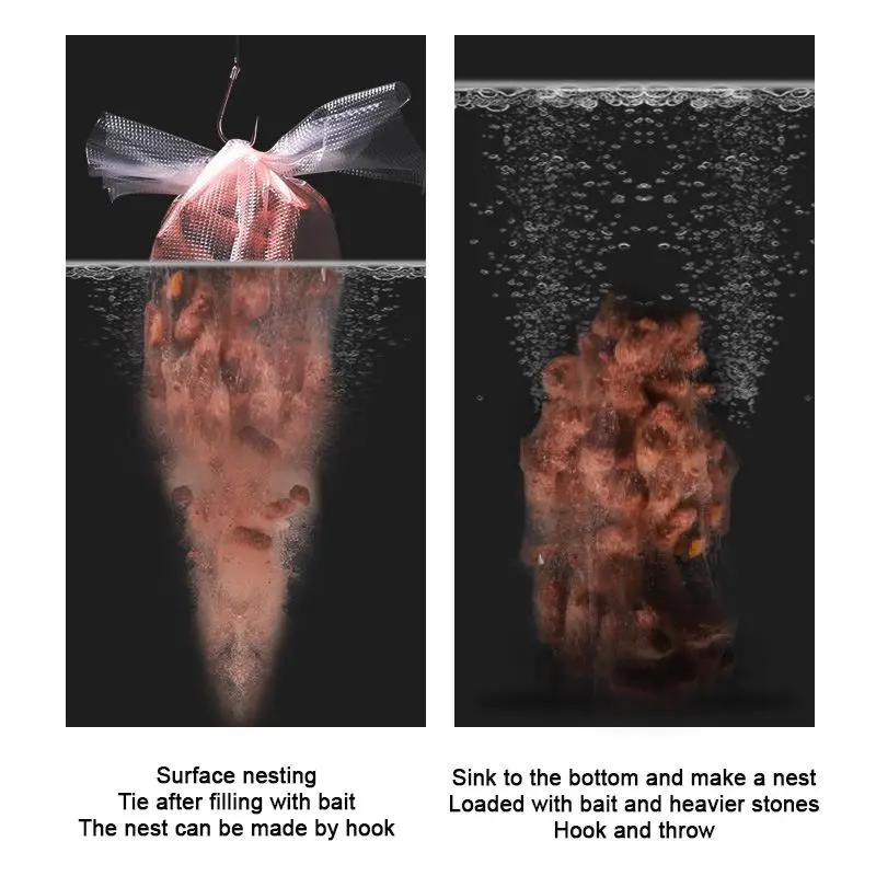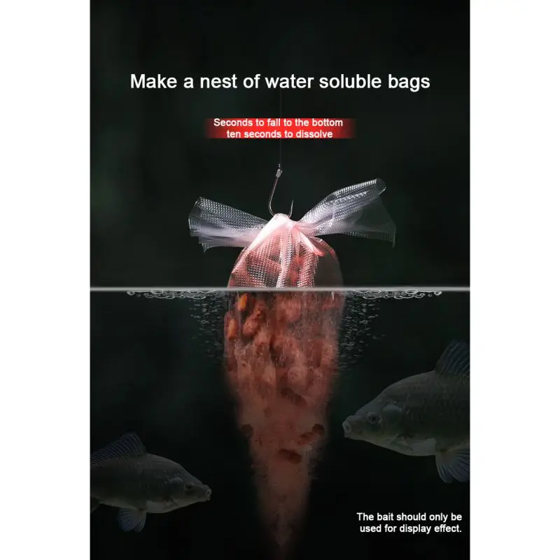 5: Esta bolsa de red soluble en agua tiene una fuerte fuerza de tracción automática y no esparcirá el cebo al lanzar el cebo mientras pesca. Si lo mantiene en un lugar seco, se puede utilizar durante todo el año;
