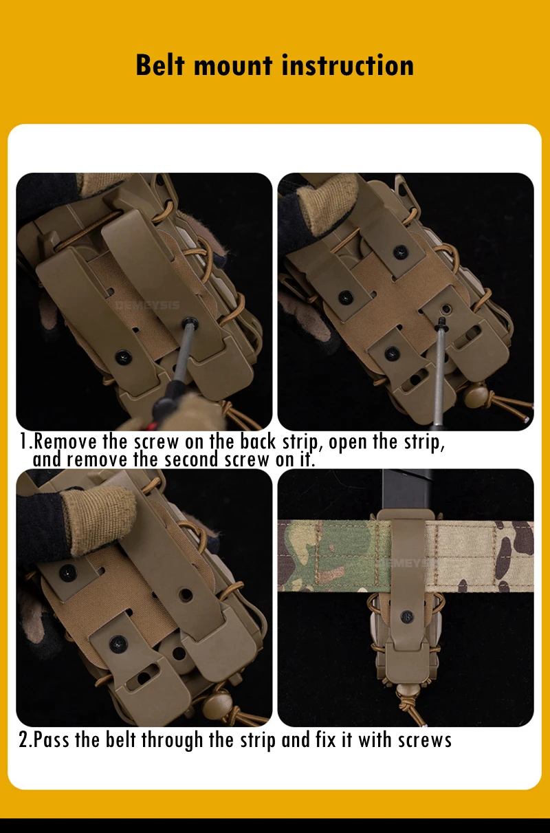 ✅ Bloqueo de 2 segundos – Ranura para cinturón atornillada + correas MOLLE