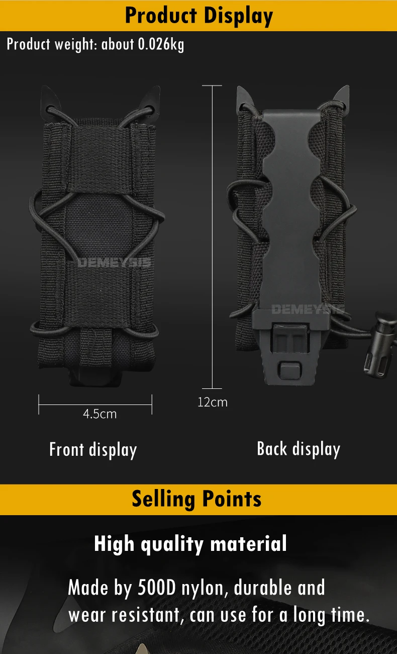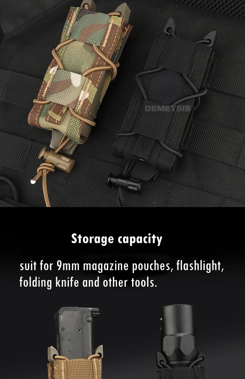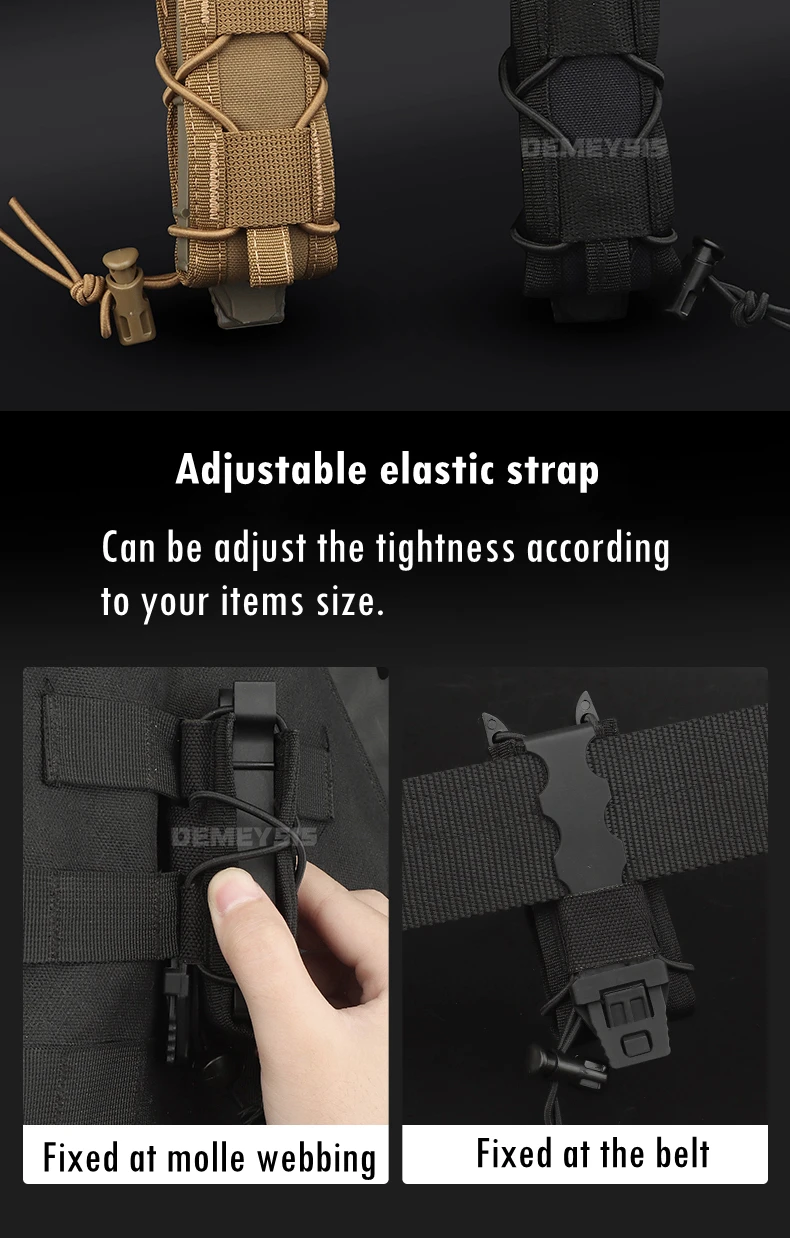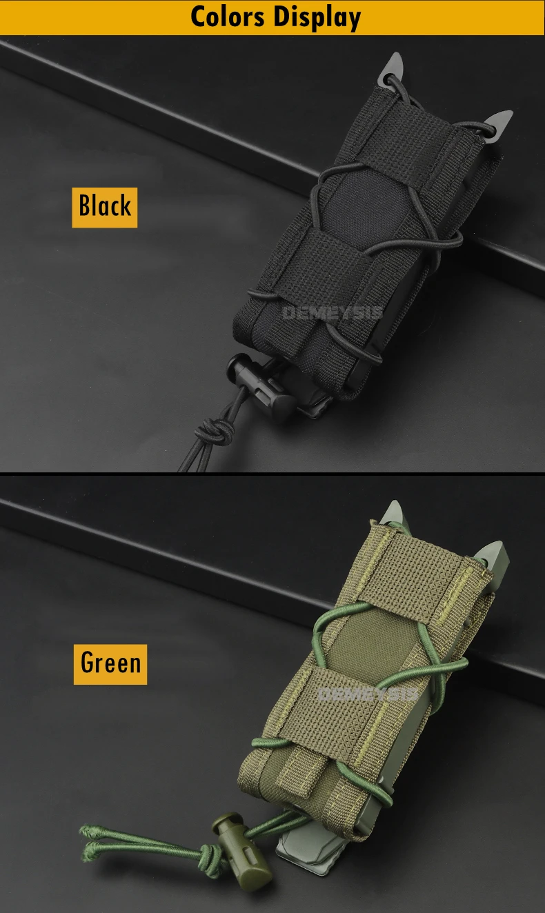 🔫 Ajuste universal – Capacidad para revistas y herramientas de 9 mm (cuchillas/linternas)