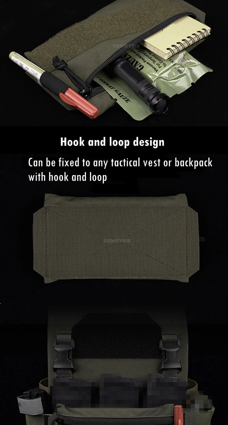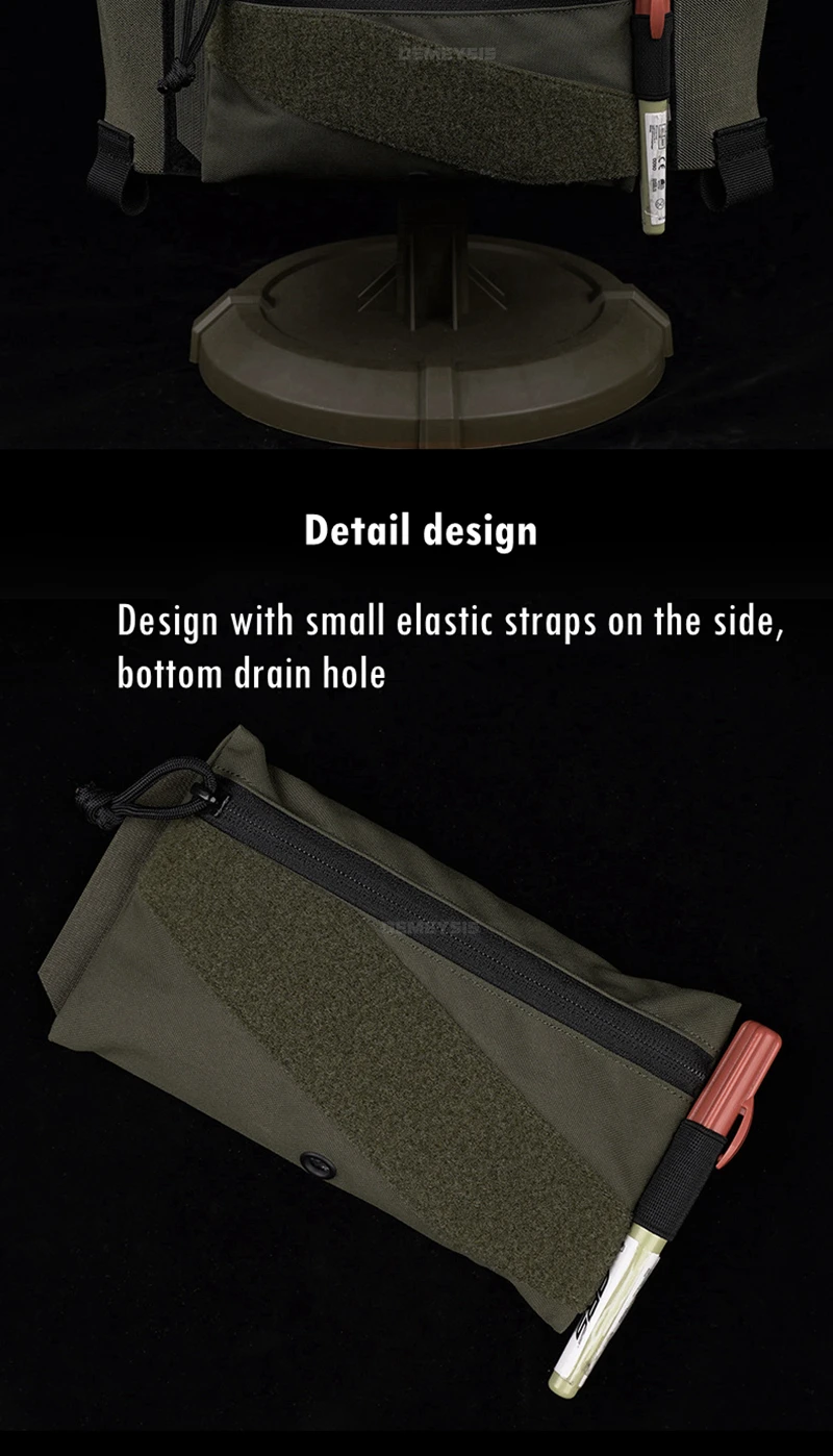 ●Diseño de gancho y bucle.Se puede fijar a cualquier chaleco táctico o mochila con gancho y bucle.