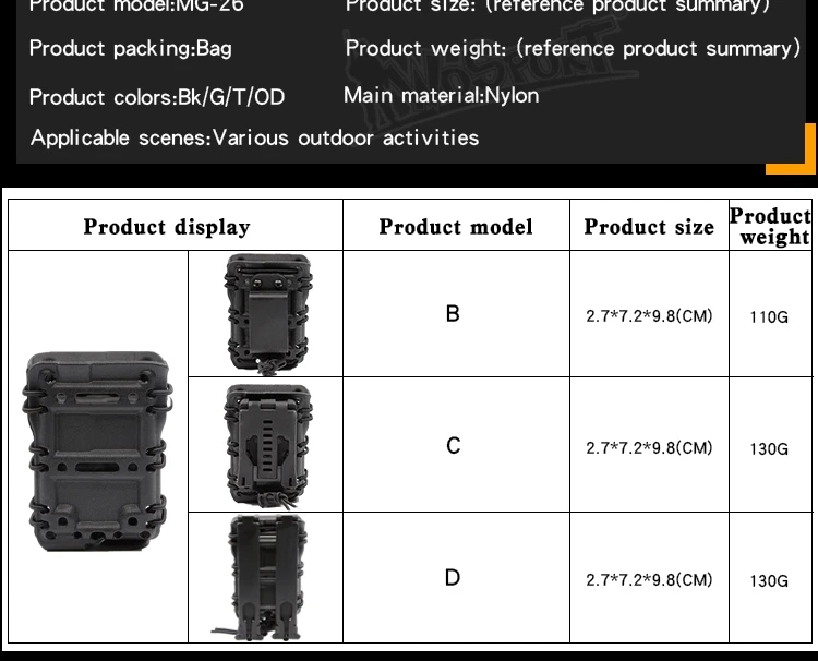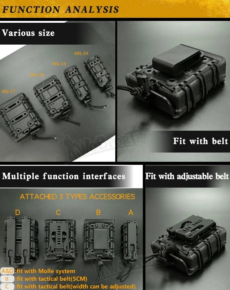 ● Uso múltiple.Sostener un cargador de pistola en airsoft, caza, militar, entrenamiento militar, paintball, juegos de tiro y otros tipos de deportes.