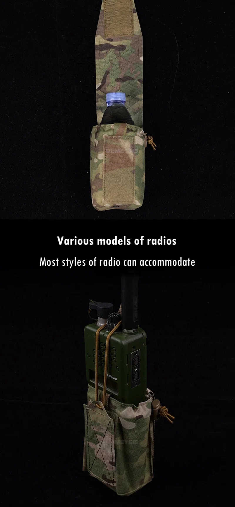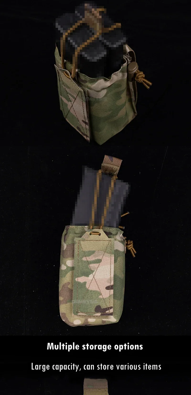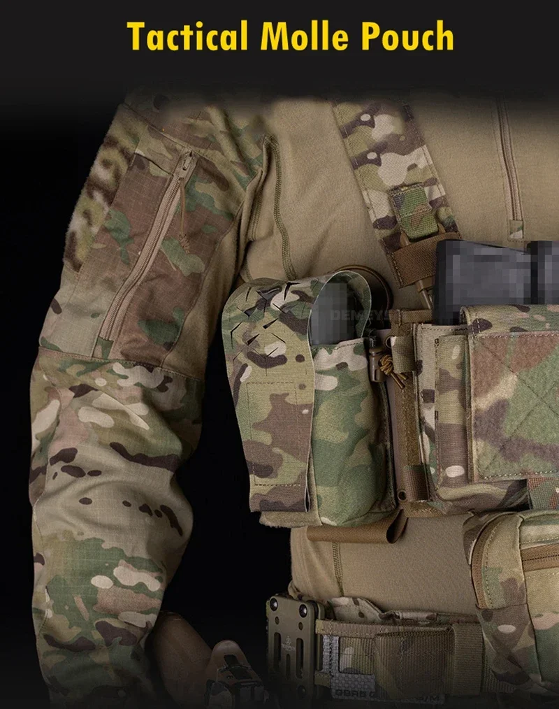 ●La bolsa de utilidad multifuncional puede contener una botella de bebida, es compatible con cargadores de 5,56 mm y cargadores de 7,62 mm y puede almacenar la mayoría de los estilos de radios.