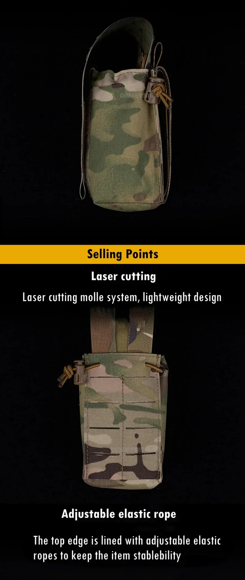●Diseño molle de corte por láser, diseño liviano y de perfil bajo. Las correas traseras cortadas con láser pueden ser compatibles con la plataforma Molle.
