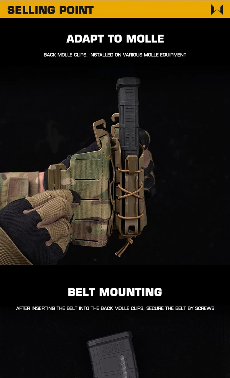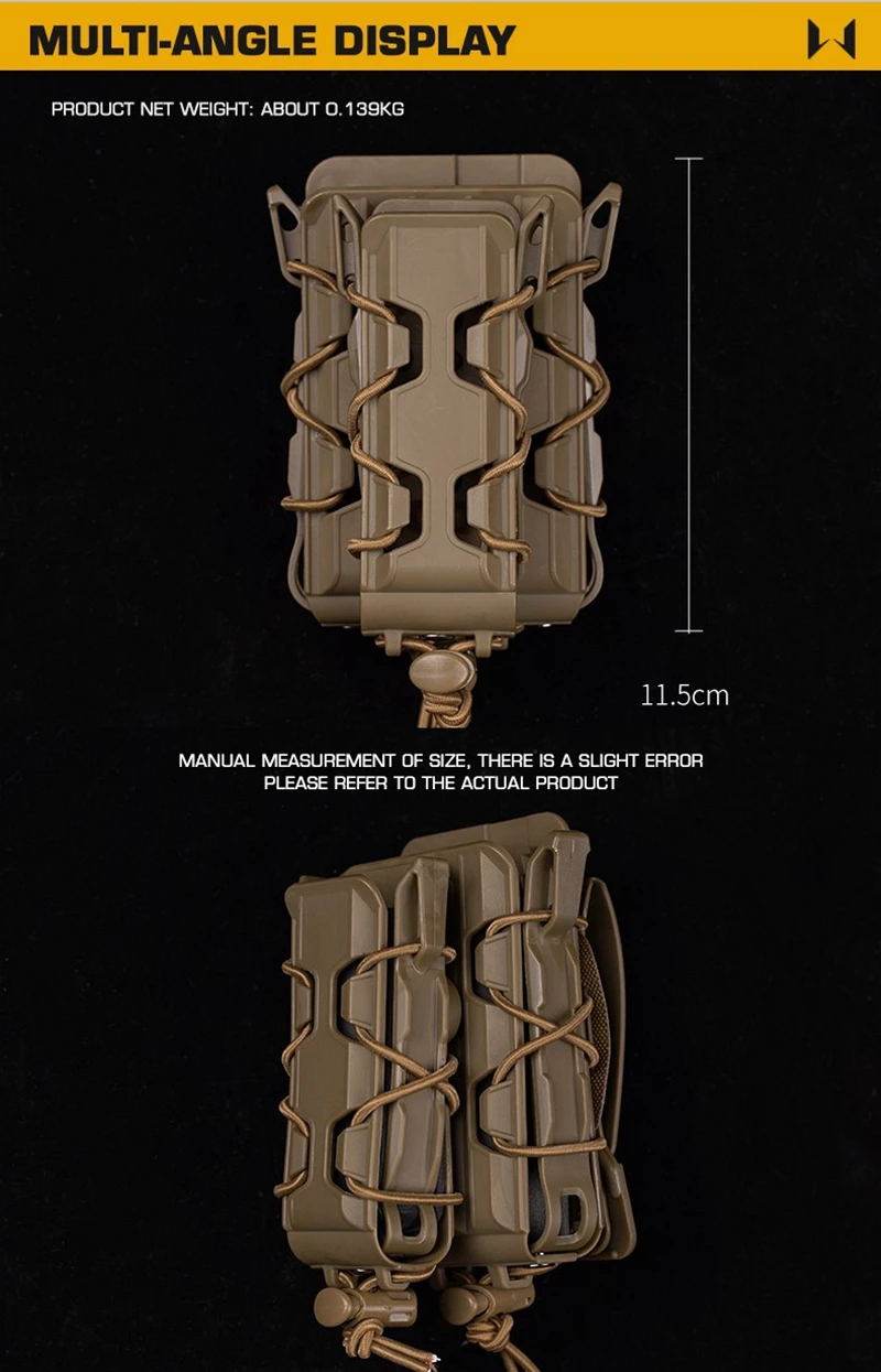 Nombre del producto: All Terrain Combo Mag PouchTamaño del producto: 11,5*7*7cmPeso bruto del producto: aproximadamente 0,2 kgColor del producto: Verde/Multicam/Tan/Grey/Black/Multicam BlackMaterial principal: nailon