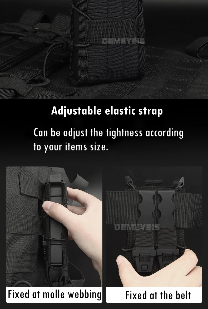 Capaz de sostener5,56mmRevistas, también puede contener una variedad de multiherramientas, cuchillos y linternas más pequeñas. La tensión ajustable te permite sujetar tus accesorios de forma segura.