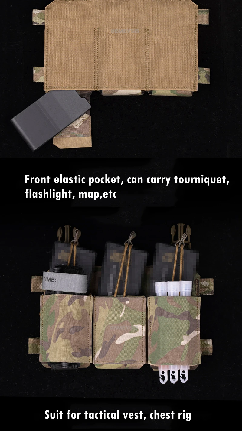 ●Diseño con clip portador de liberación rápida.Bolsillo elástico frontal, puede llevar torniquete, linterna, mapa, etc.