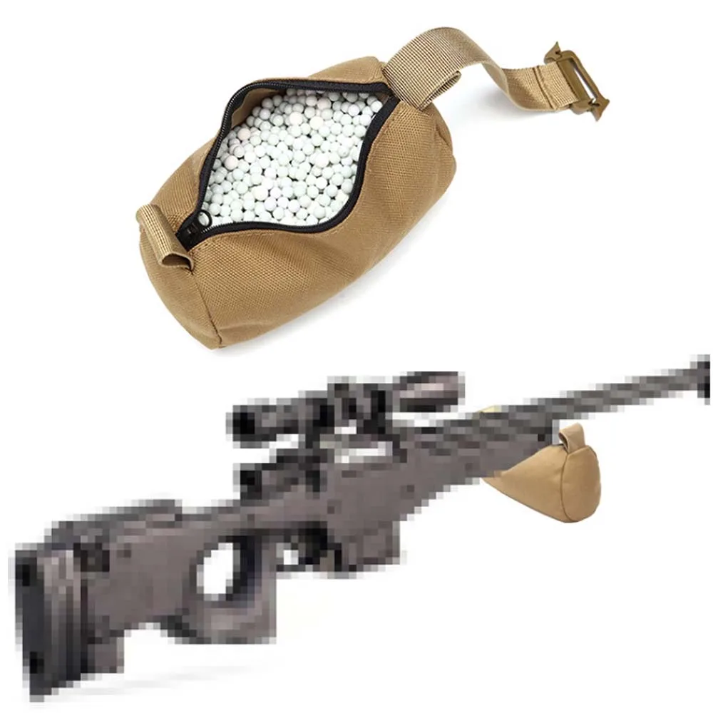 1. Cuando estás acostado en el suelo, este saco de arena se puede colocar debajo de la parte delantera del rifle para ayudarte a descansar.