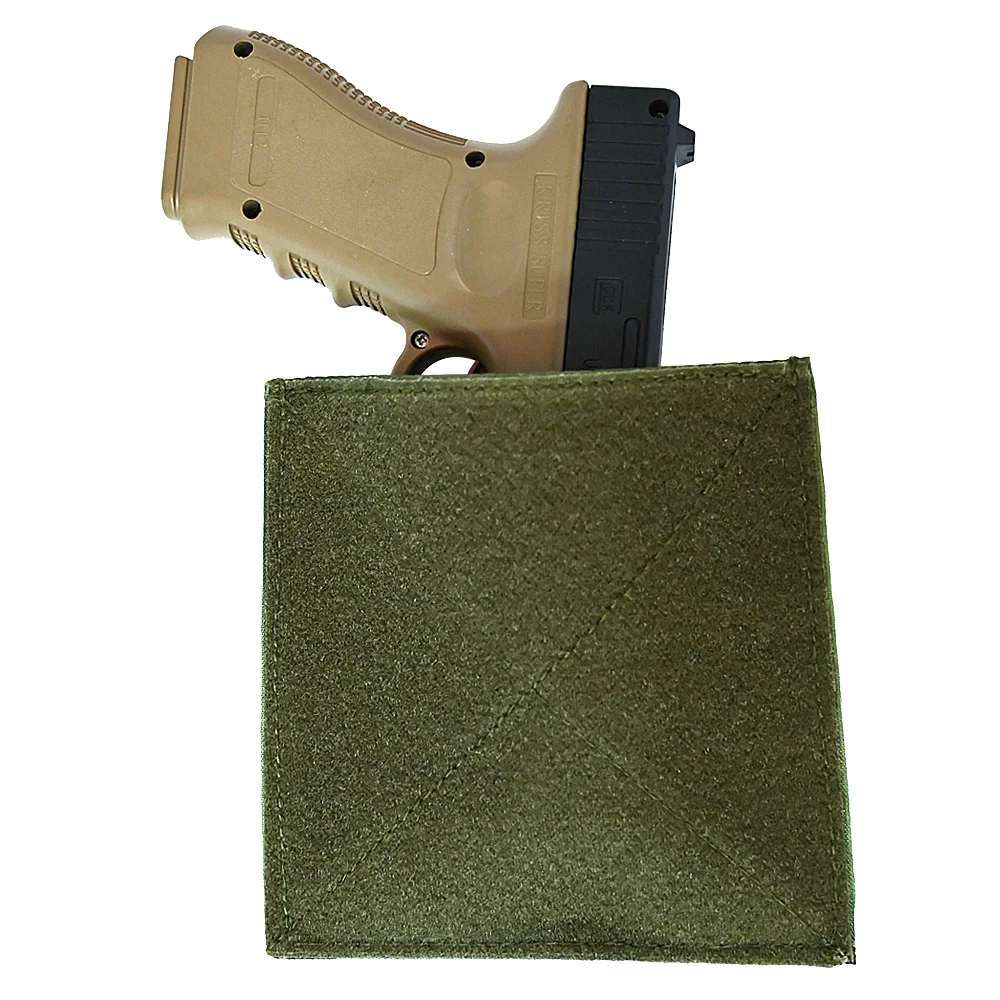 Bucle en el exterior, gancho en el interior, la cuña Holster proporciona un sobre para que el usuario inserte una funda que se encuentra entre la plataforma y el cuerpo/armadura.