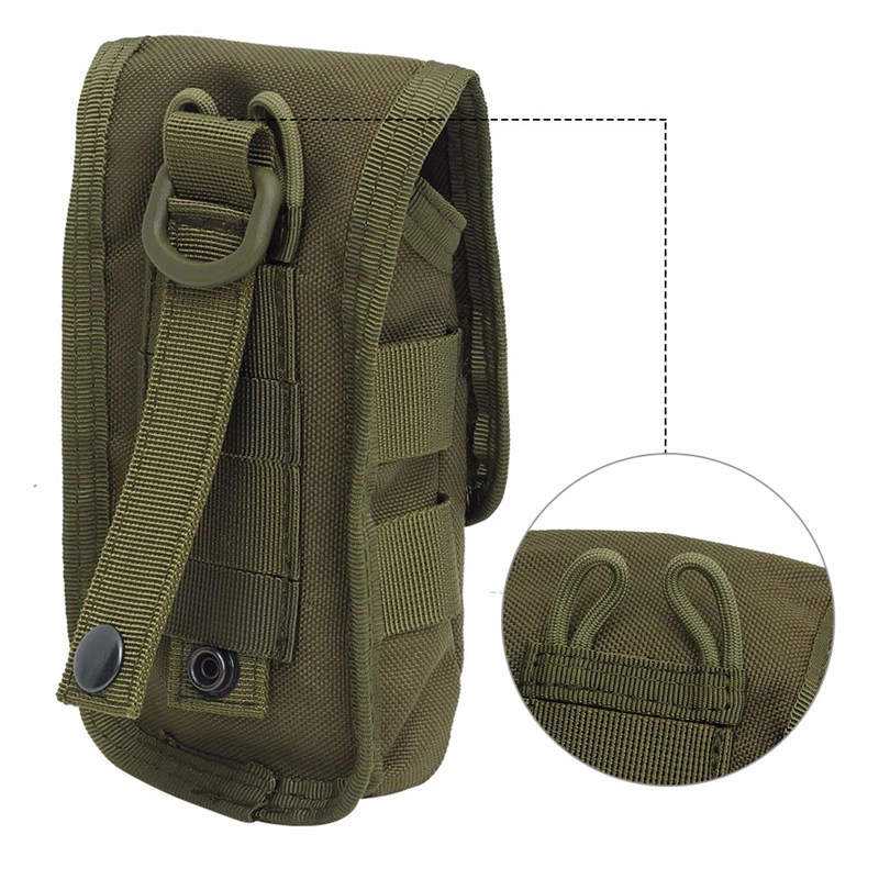 Tipo: bolsa táctica de teléfono móvil de doble capa. Material: nailon 1000D. Tamaño: 9cm (largo) X 17cm (alto) X 4cm (ancho). Peso: 100g. Diseño: sistema Molle; Doble bolsillo Ocasión: Caza; Deportes al aire libre; Ciclismo; Pesca; Camping, etc.